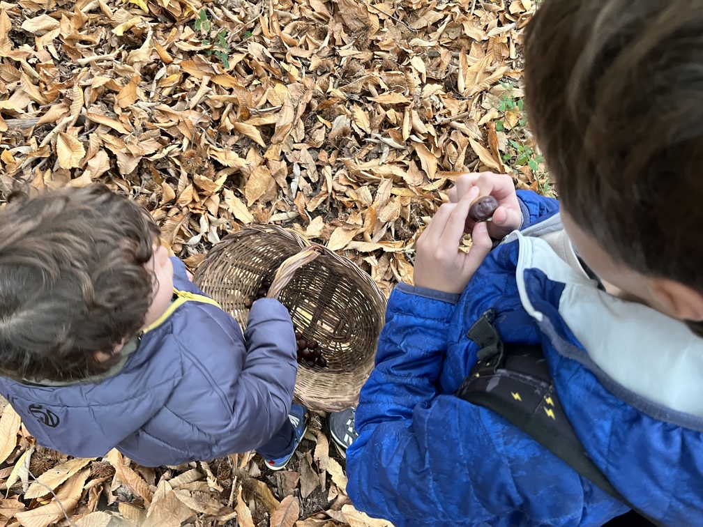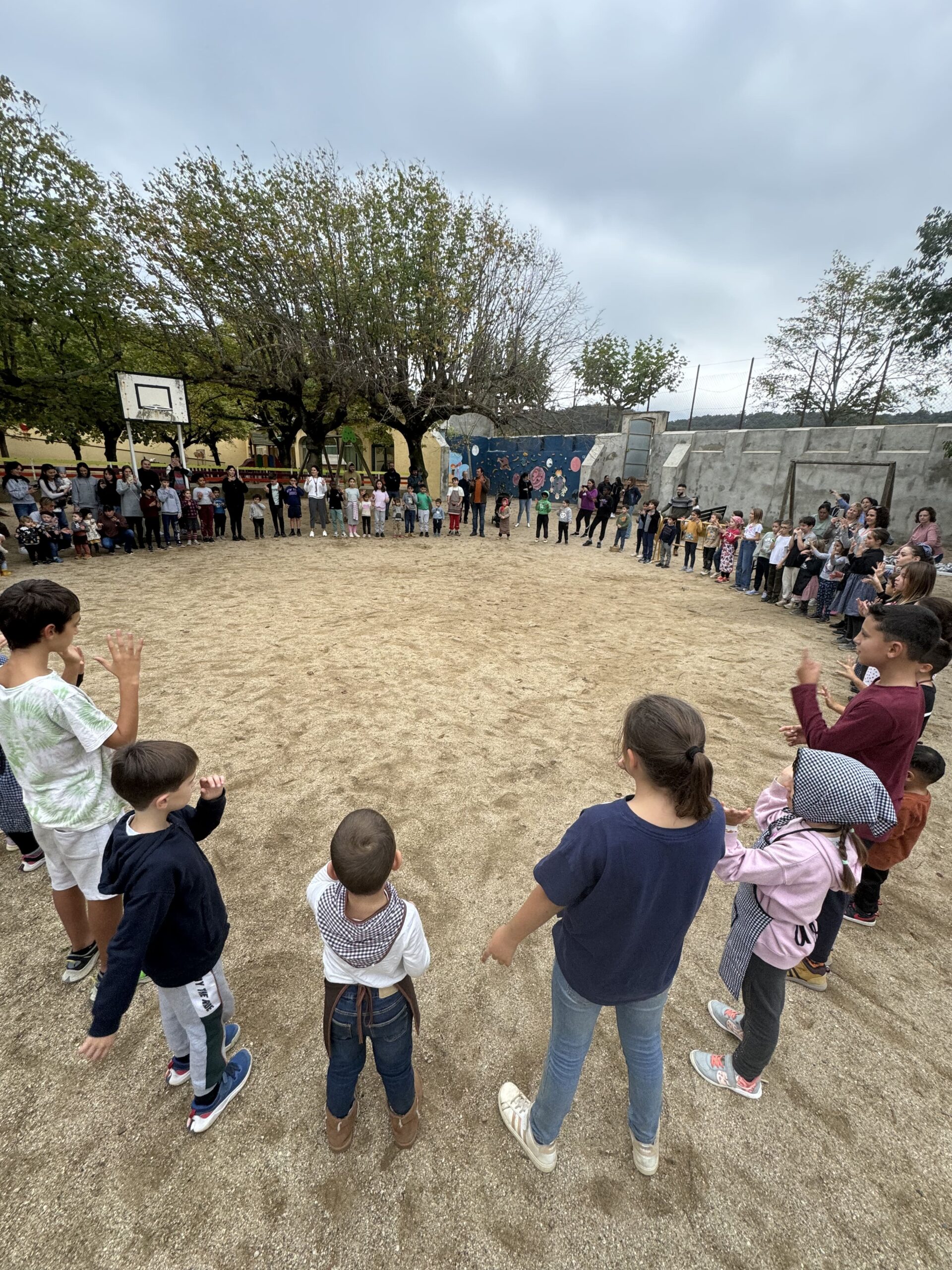Com ja és tradició, la celebració de la Castanyada a l’escola va començar amb la sortida al Coll de la Manrella. Vam fer una agradable passejada enmig de castanyers tenyits de colors de tardor i, a més, vam trobar moltes castanyes!