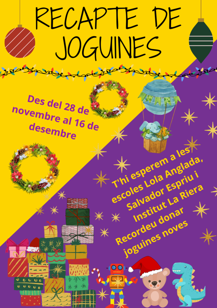 01/12/22Com cada any , des de l’escola participem en la iniciativa del “Banc d’aliments I recollida de joguines noves”.