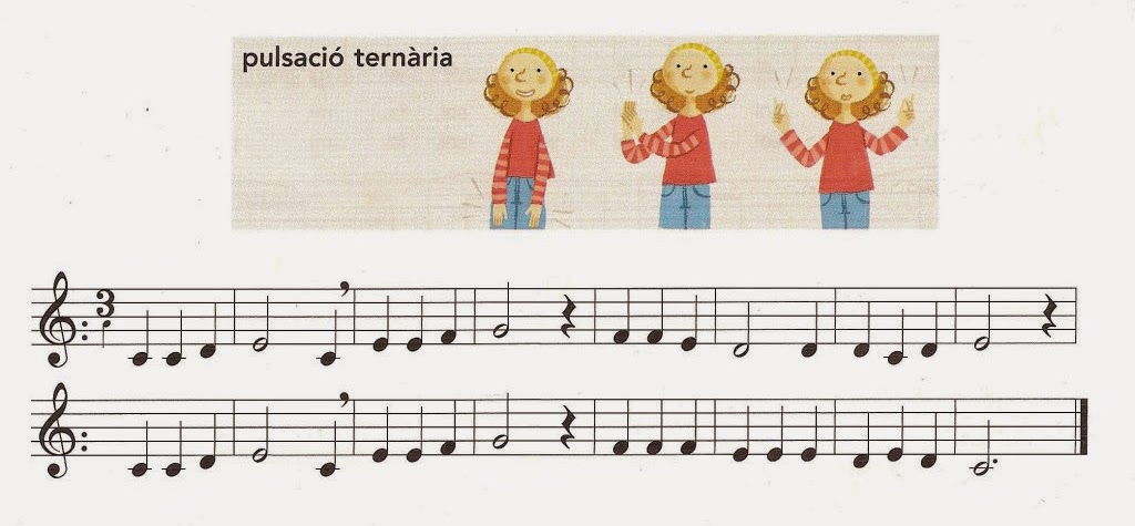 Avui hem estat treballant el compàs amb la classe de 3r. El compàs és la mesura que es pren com a unitat per dividir una obra musical en trossos de la mateixa durada. Està indicat al començament dels compassos, i afecta i queda reflectit en el pentagrama per les línies divisòries perpendiculars que el tallen. Segons la quantita de temps que tenen es poden considerar: