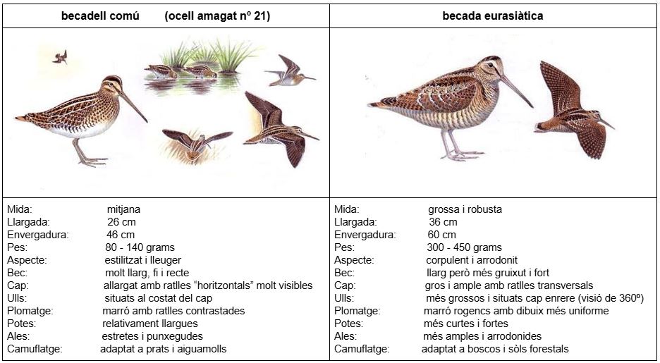 I això ve a tomb perquè en aquesta darrera entrega hi ha hagut una errada de molts de vosaltres en la identificació de l’ocell amagat nº 21. La fotografia és d’un becadell comú i molts de vosaltres l’heu identificat com a becada eurasiàtica.