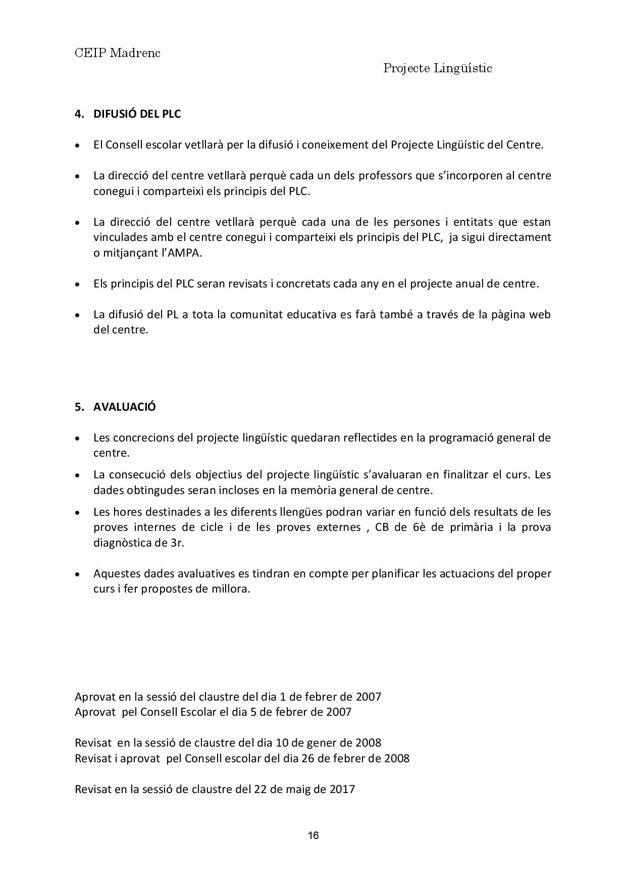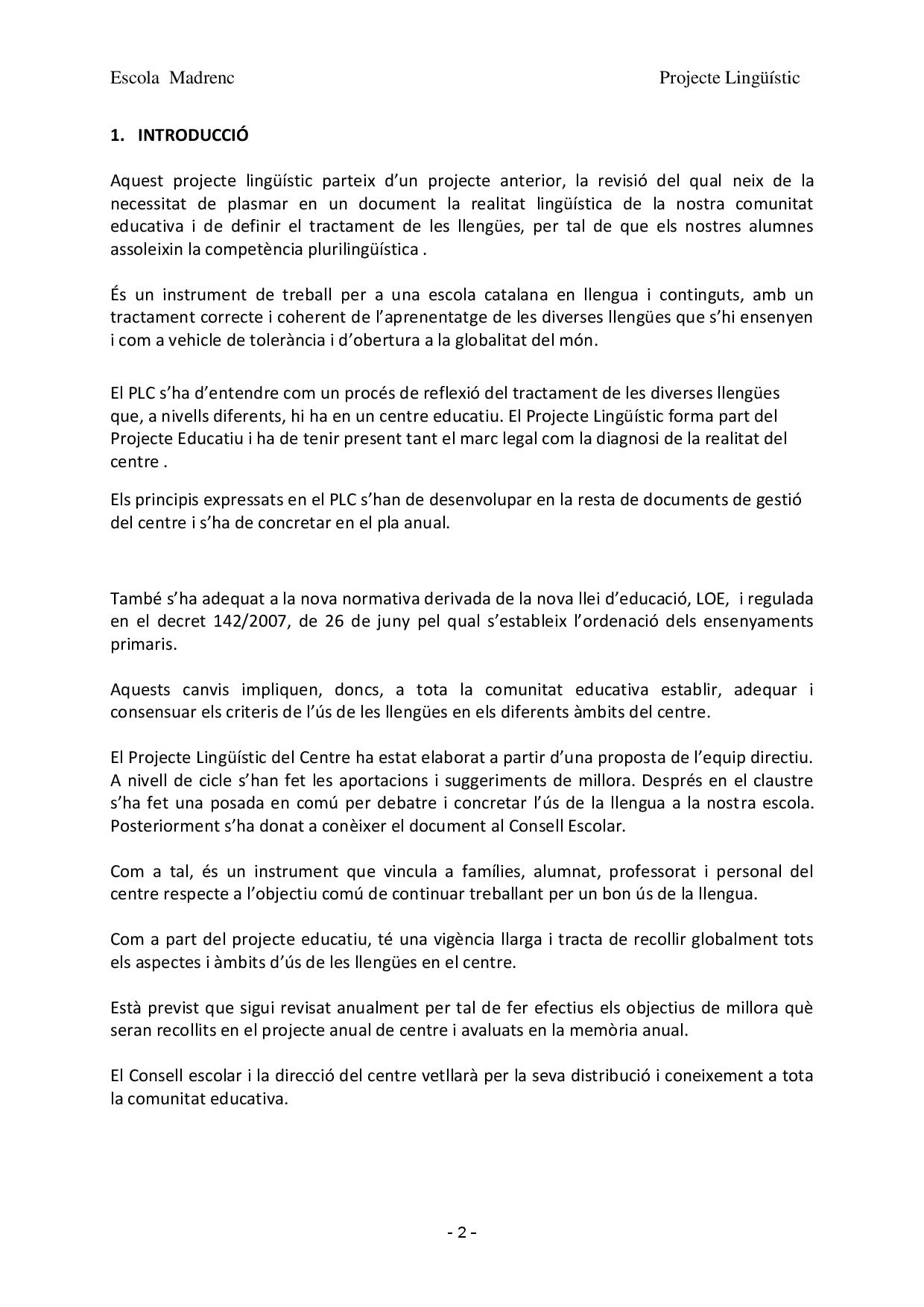 Projecte Lingüístic de Centre