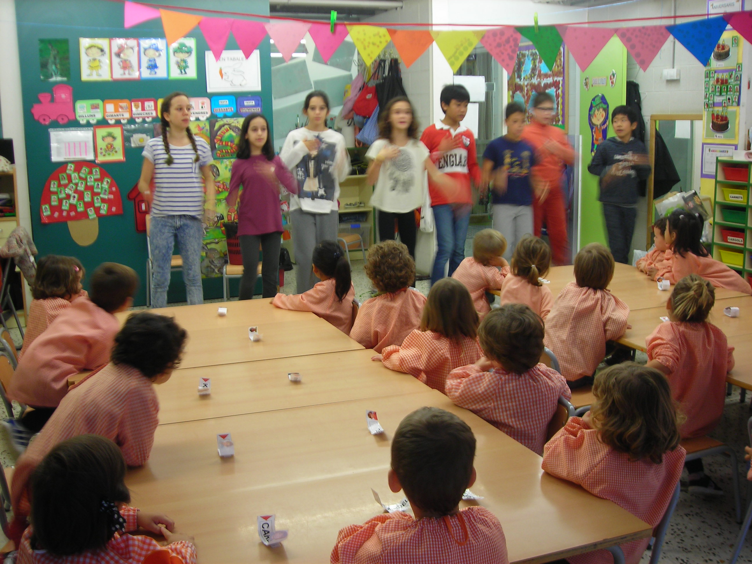 Els nens de 6è de primària van passar durant el matí per totes les classes cantant diferents cançons i ens va agradar molt perquè ho van fer molt bé. A la tarda un pare músic de P3 ens va ensenyar un instrument que no coneixíem: la viola de gamba, i va fer un petit concert que ens va encantar.