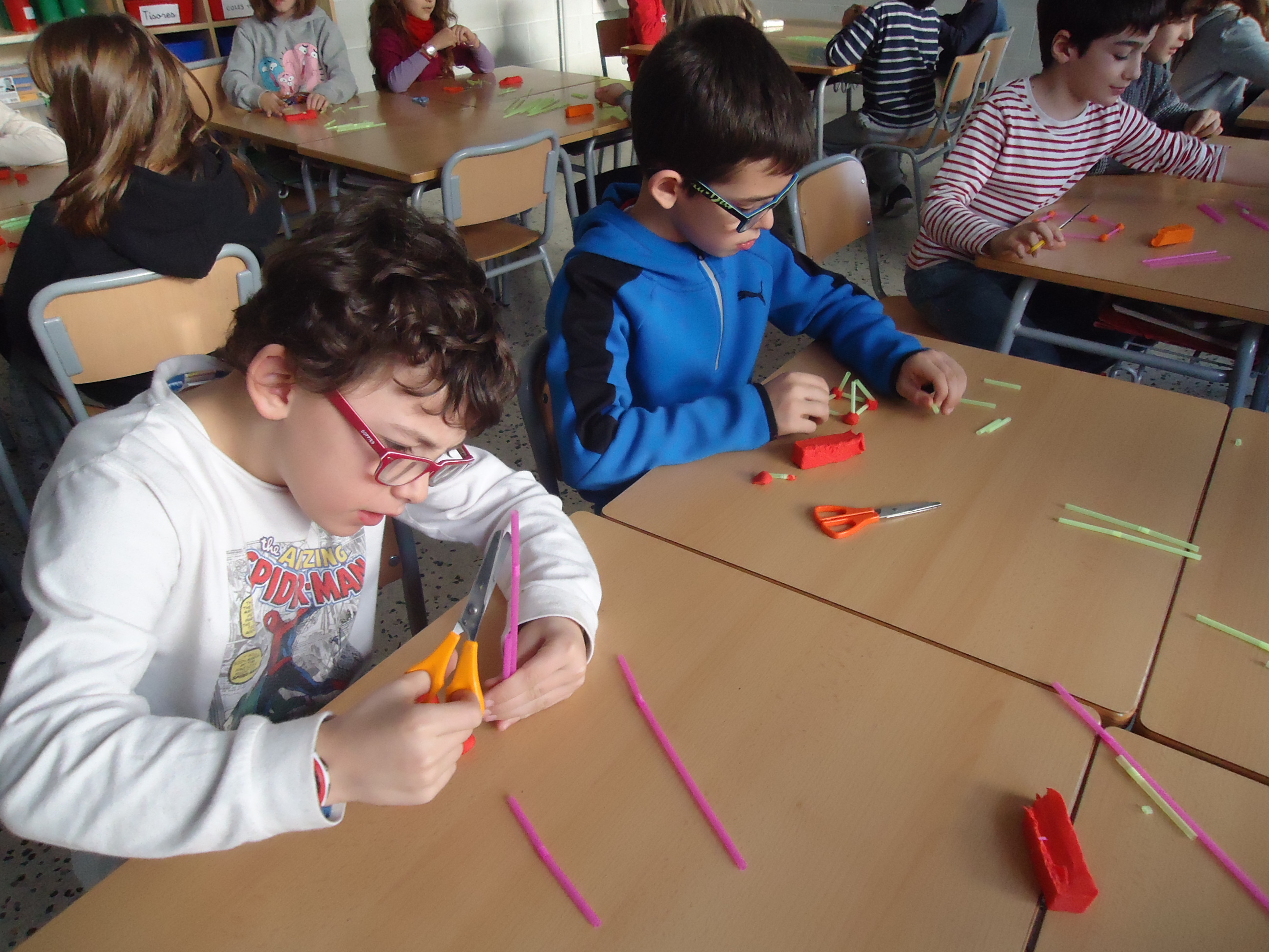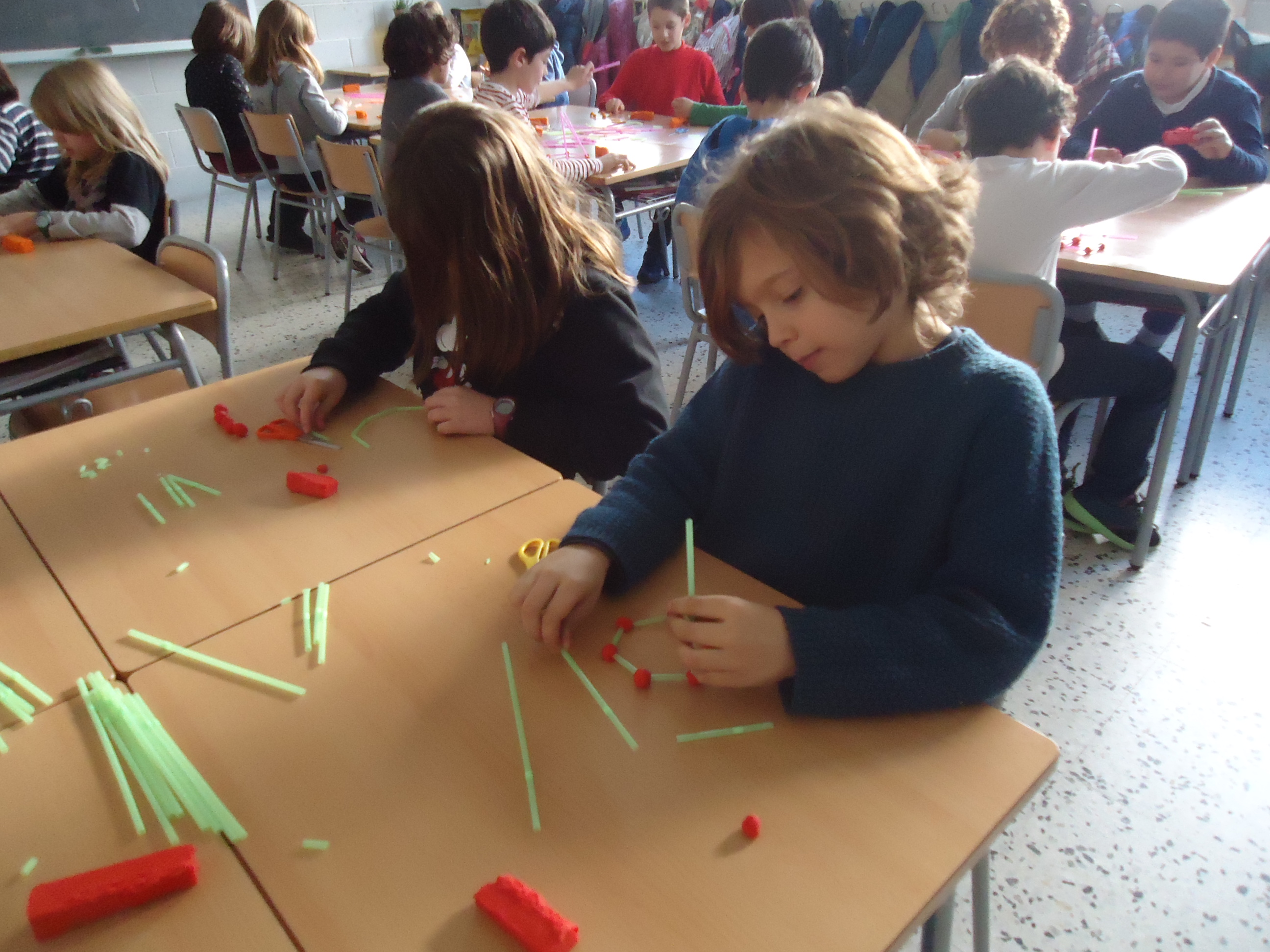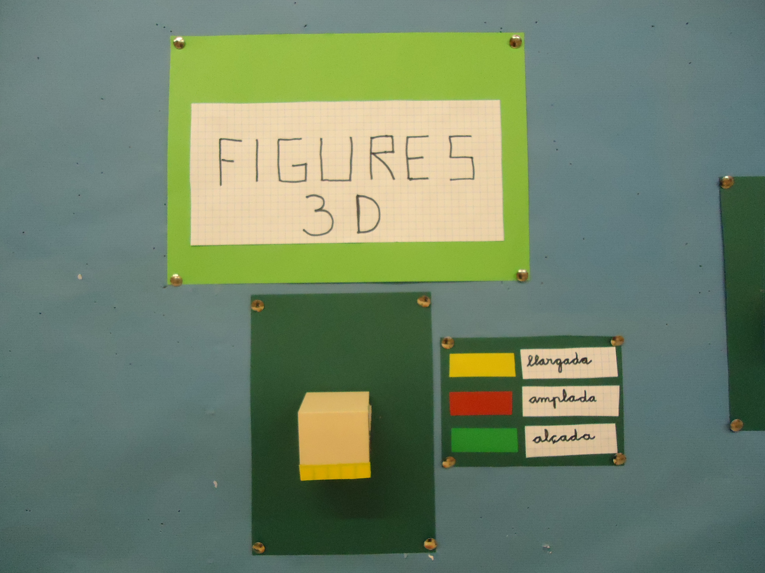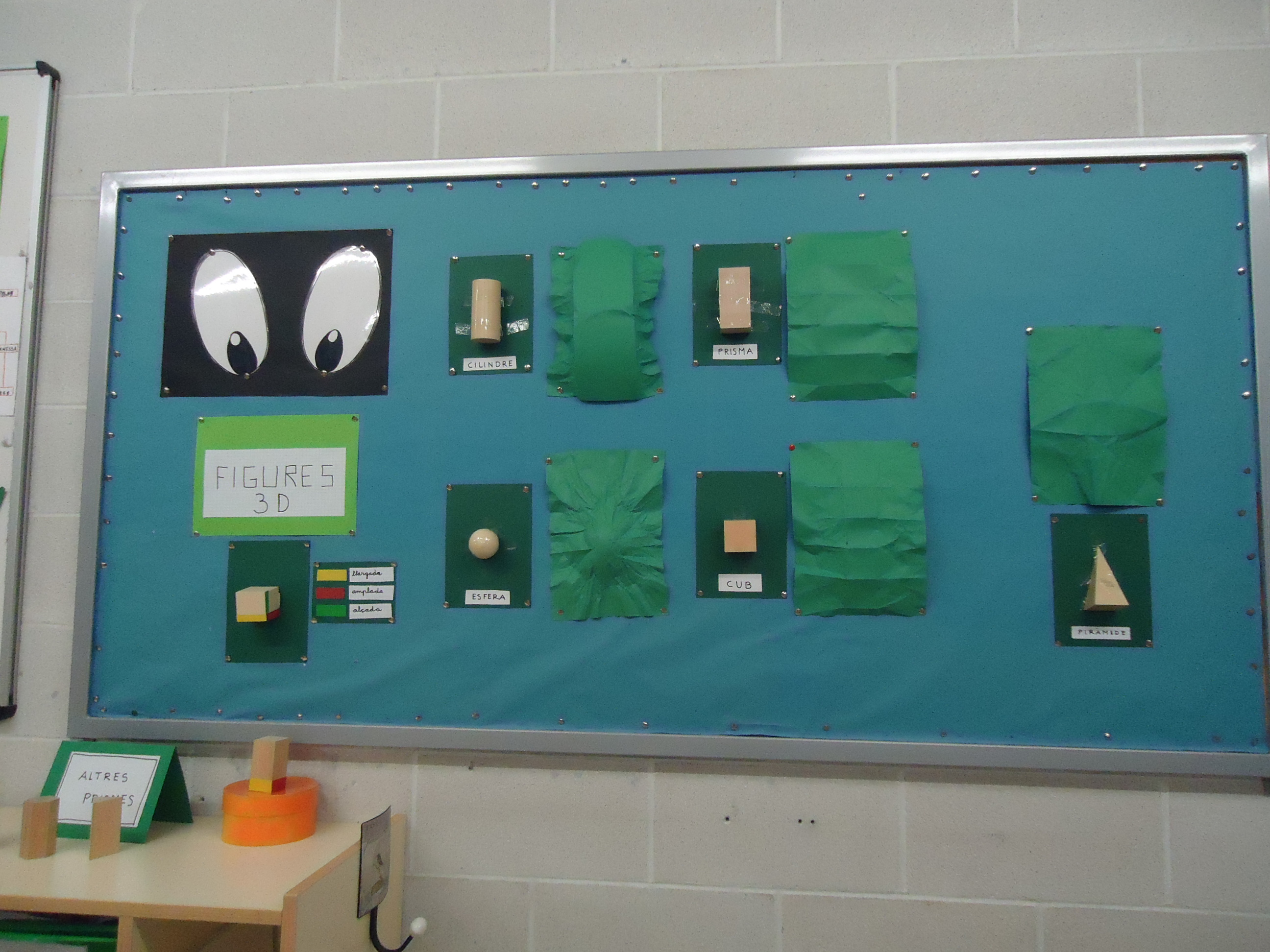 A tercer hem treballat les figures planes i les figures amb 3D. Hem fet descripcions i hem reflexionat sobre les seves propietats. També hem observat diferents embolcalls on prèviament s’havien embolicat algunes figures amb volum i havíem de relacionar la figura amb el seu embolcall. Ha estat un tema que a tots ens ha agradat força!