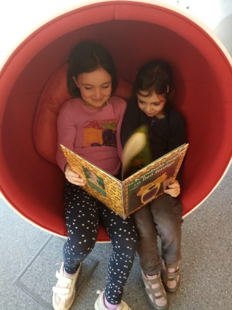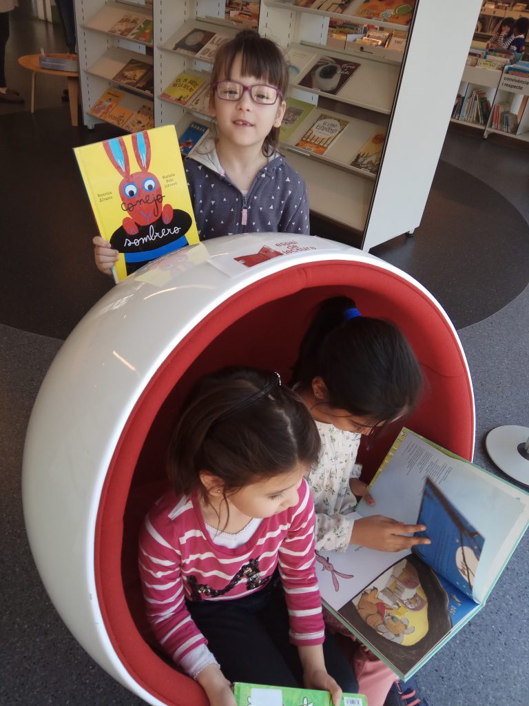 Hi vam descobrir que podem demanar en préstec revistes, contes en diferents llengües i fins i tot podem fer servir l’ordinador per buscar informació sobre temes que ens interessin. Per acabar, ens va deixar llegir una estona, però sempre, sempre en silenci.