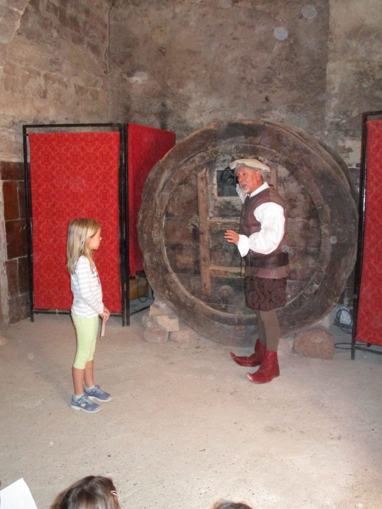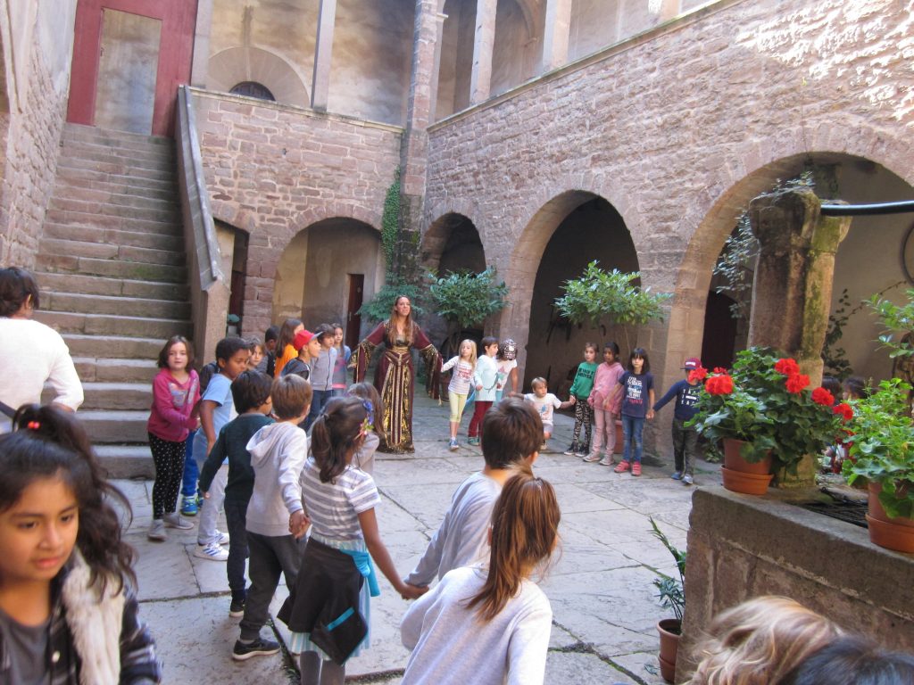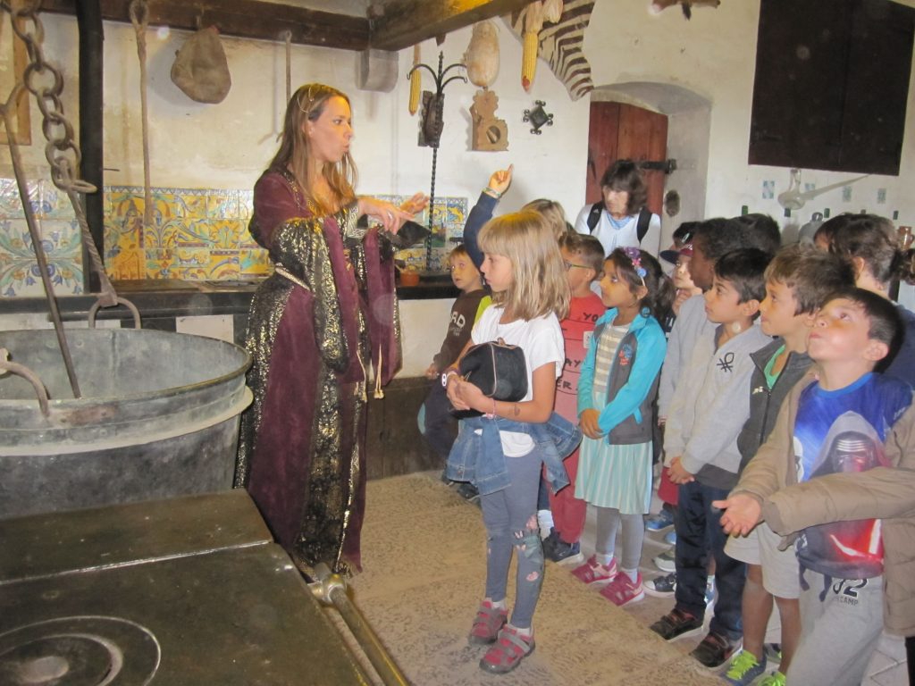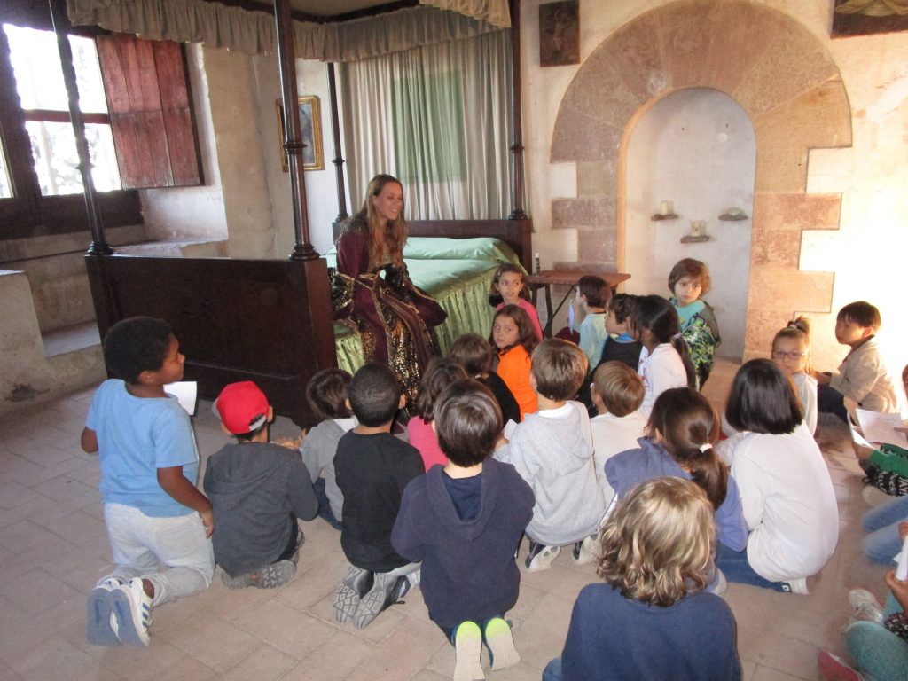Allà ens va rebre en Pau, el trobador, i la baronessa amb el seus preciosos vestits. Ells ens van ensenyar les habitacions, la cuina ,la biblioteca, la resta de les estances del seu castell i també ens van explicar com vivien avui en dia.