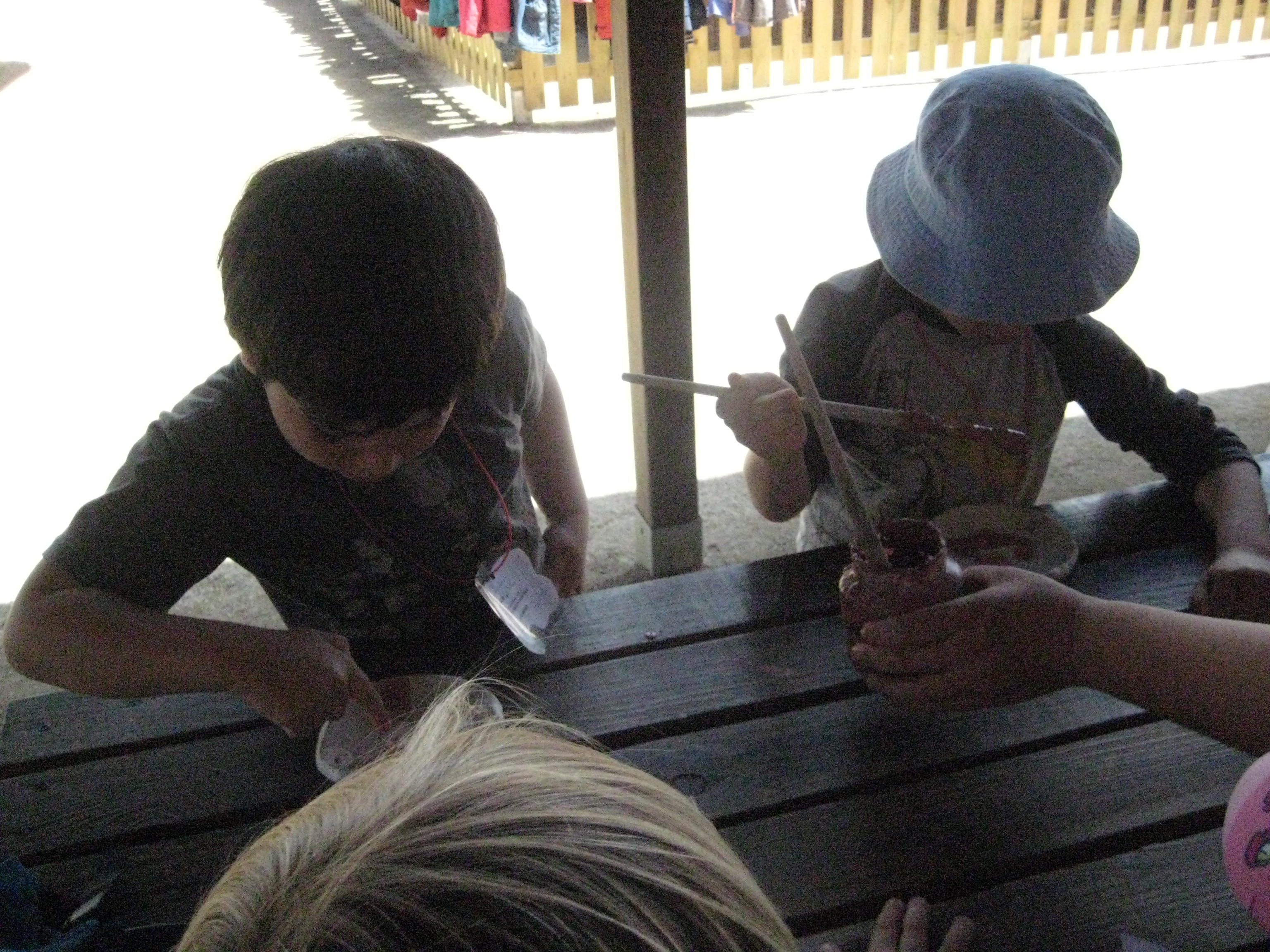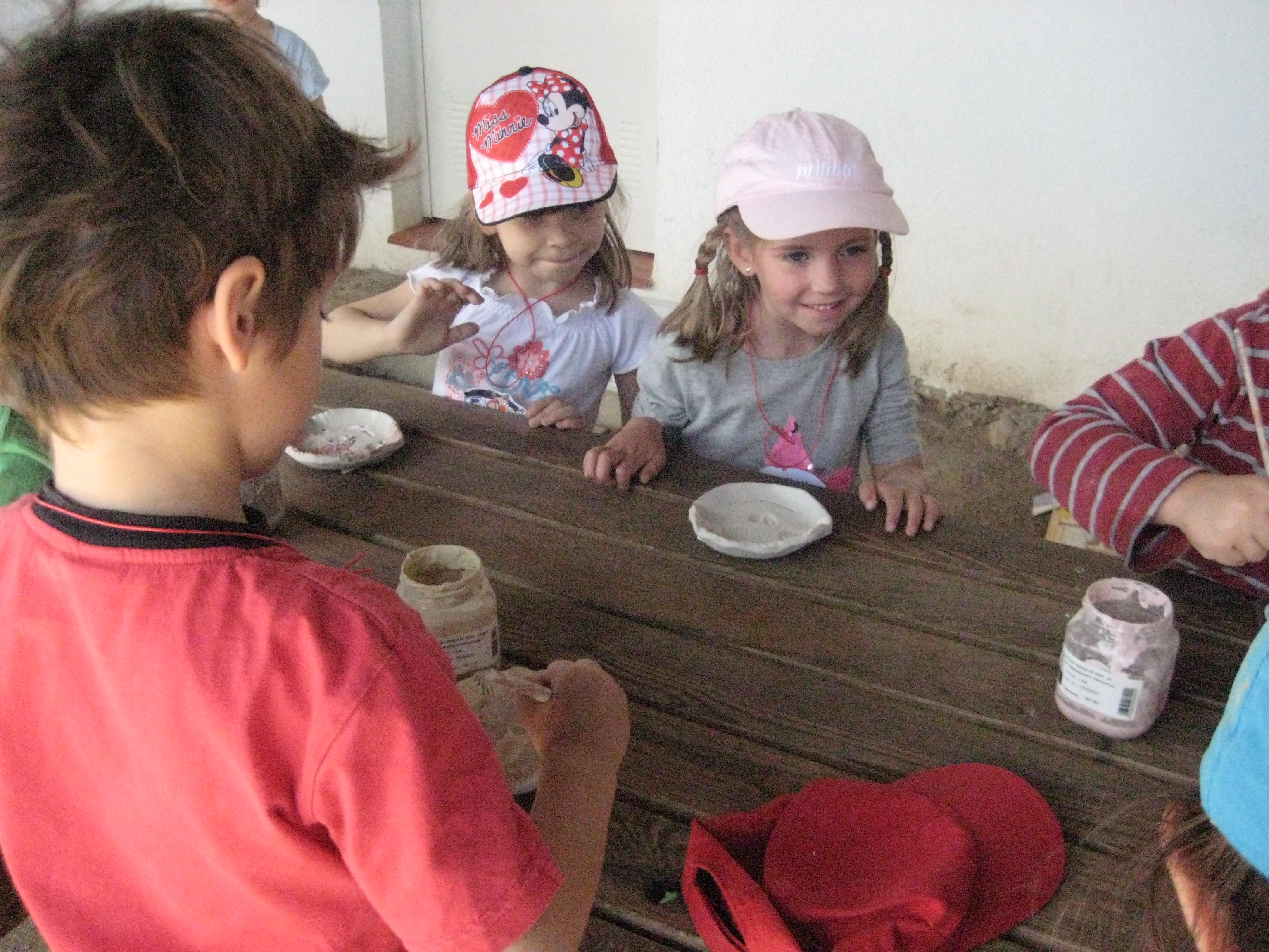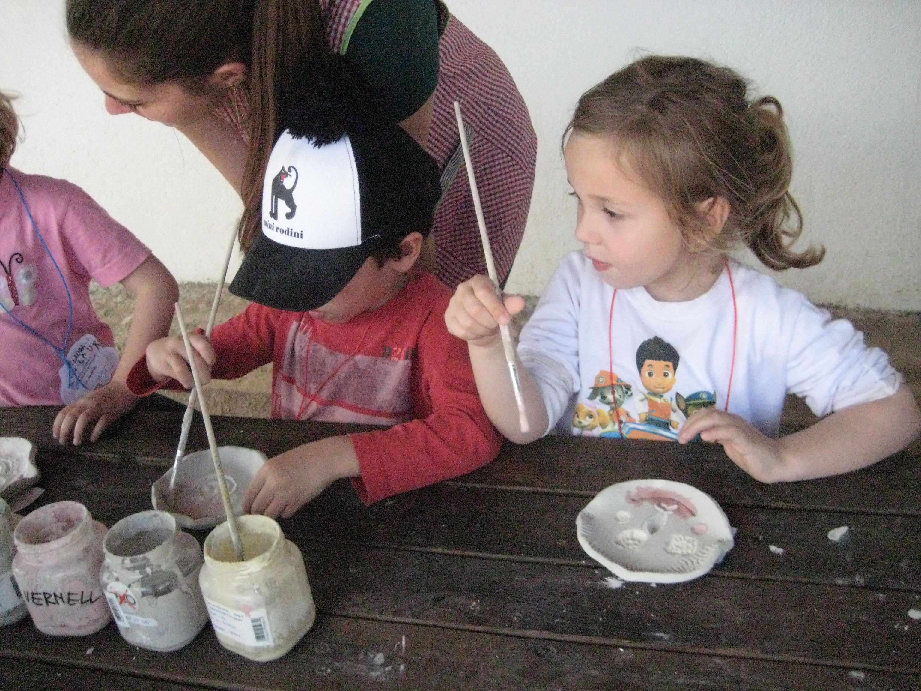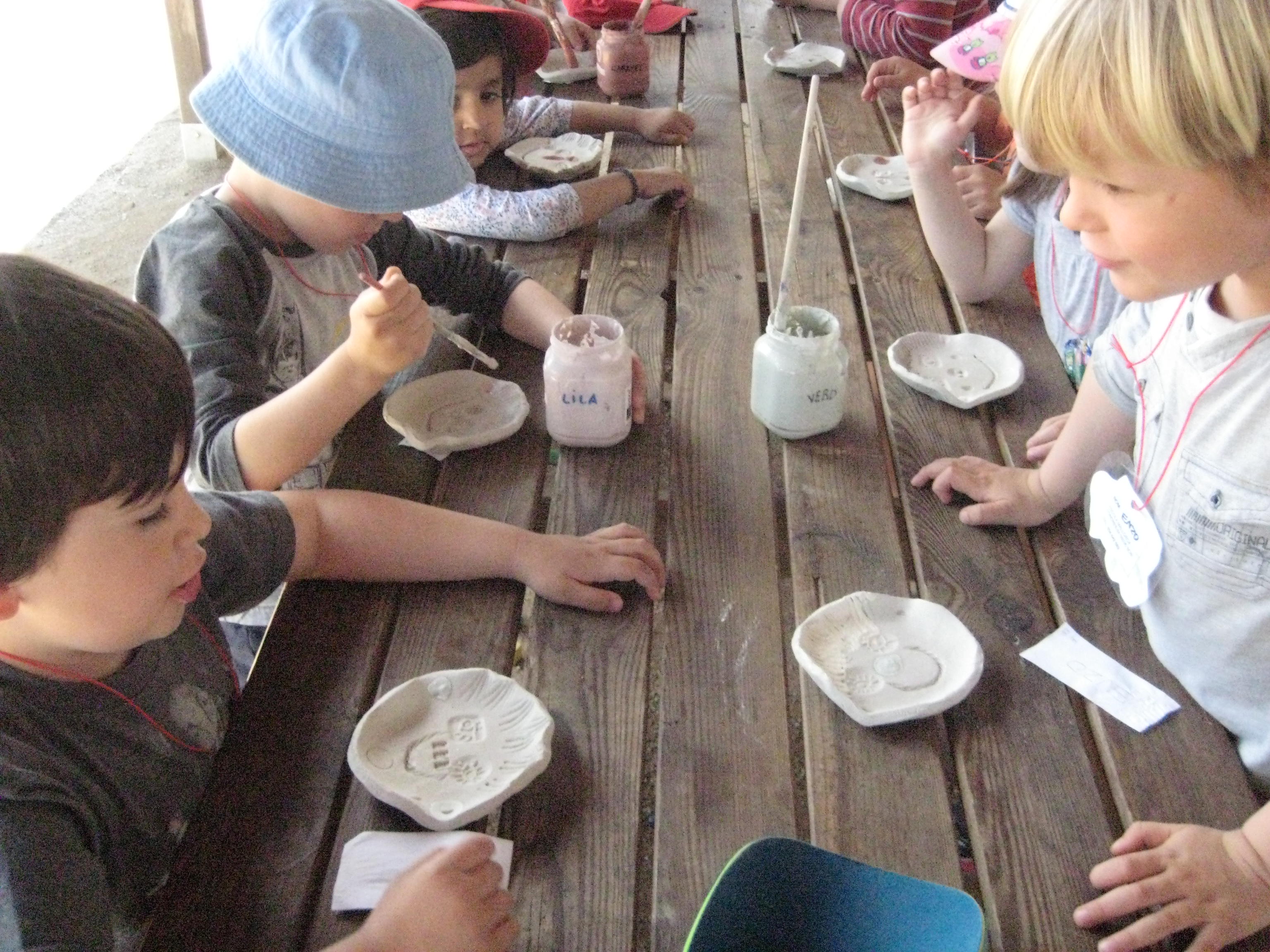 Mentre dinàvem a l’aire lliure, el fang es va anar assecant al sol, i després ja el vam poder pintar amb pintures especials per fer ceràmica. Les peces de fang cal enfornar-les, així que quan ens les portin a l’escola des de Can Fusteret, tindrem segur, una bona sorpresa!