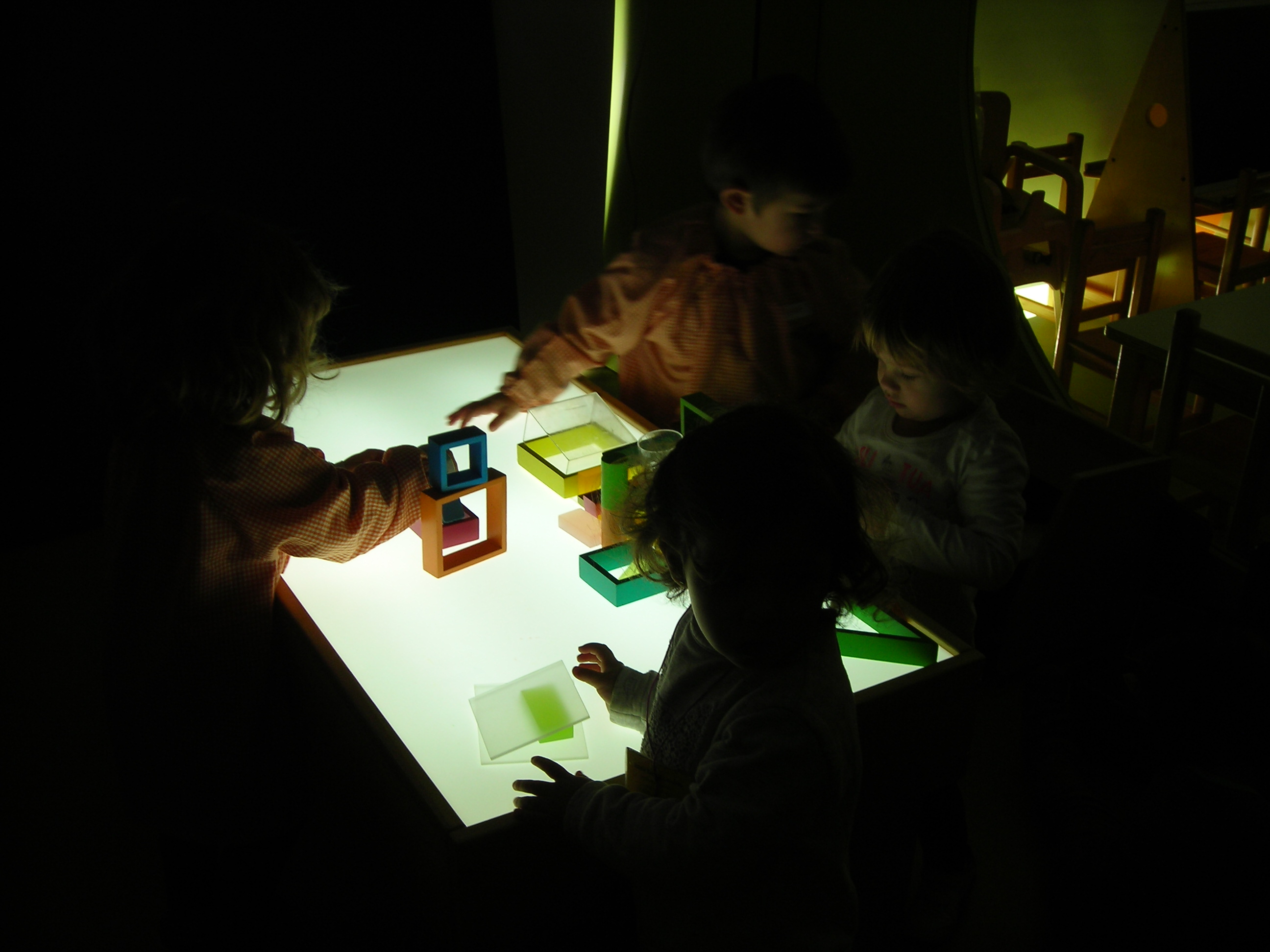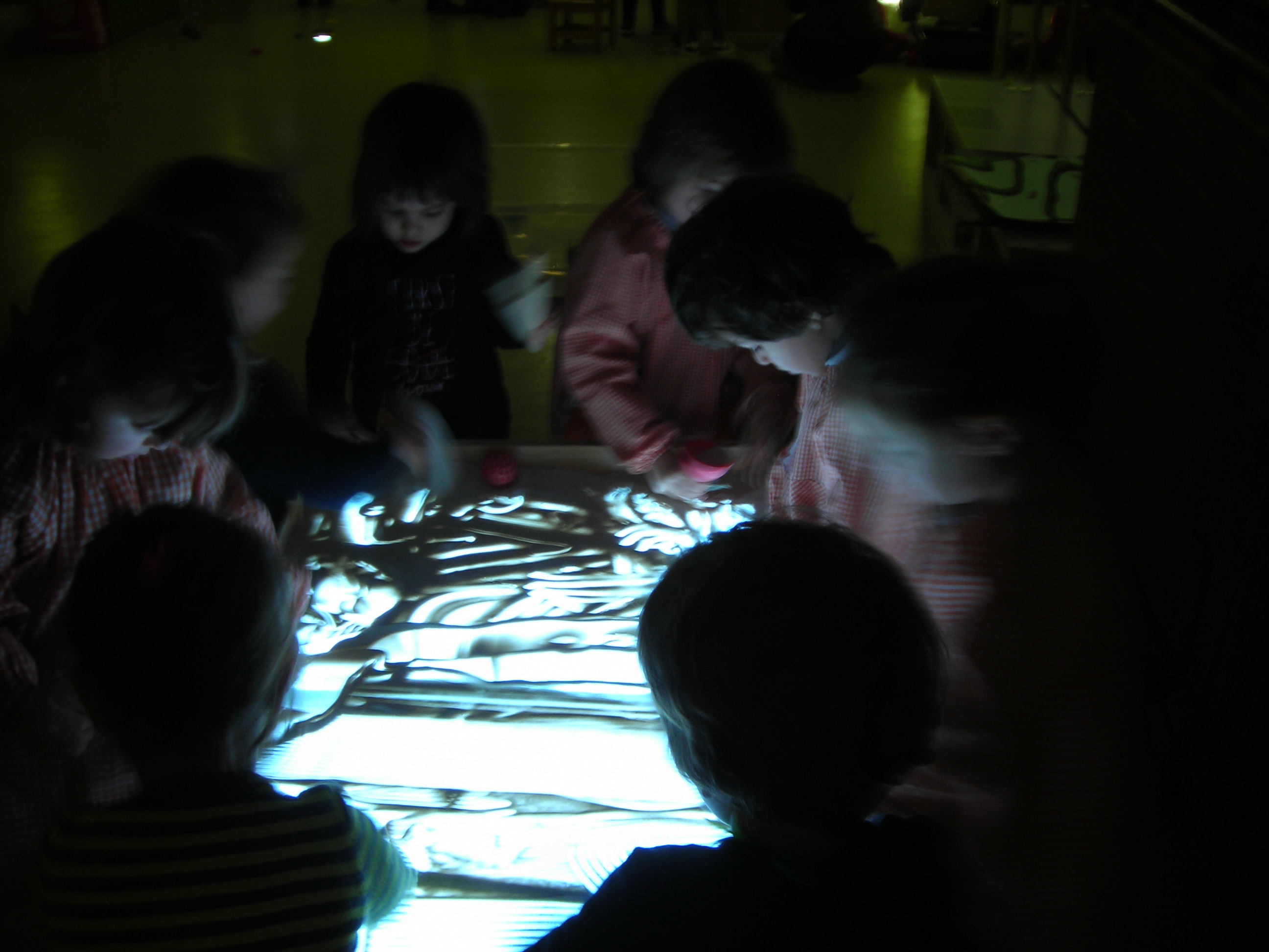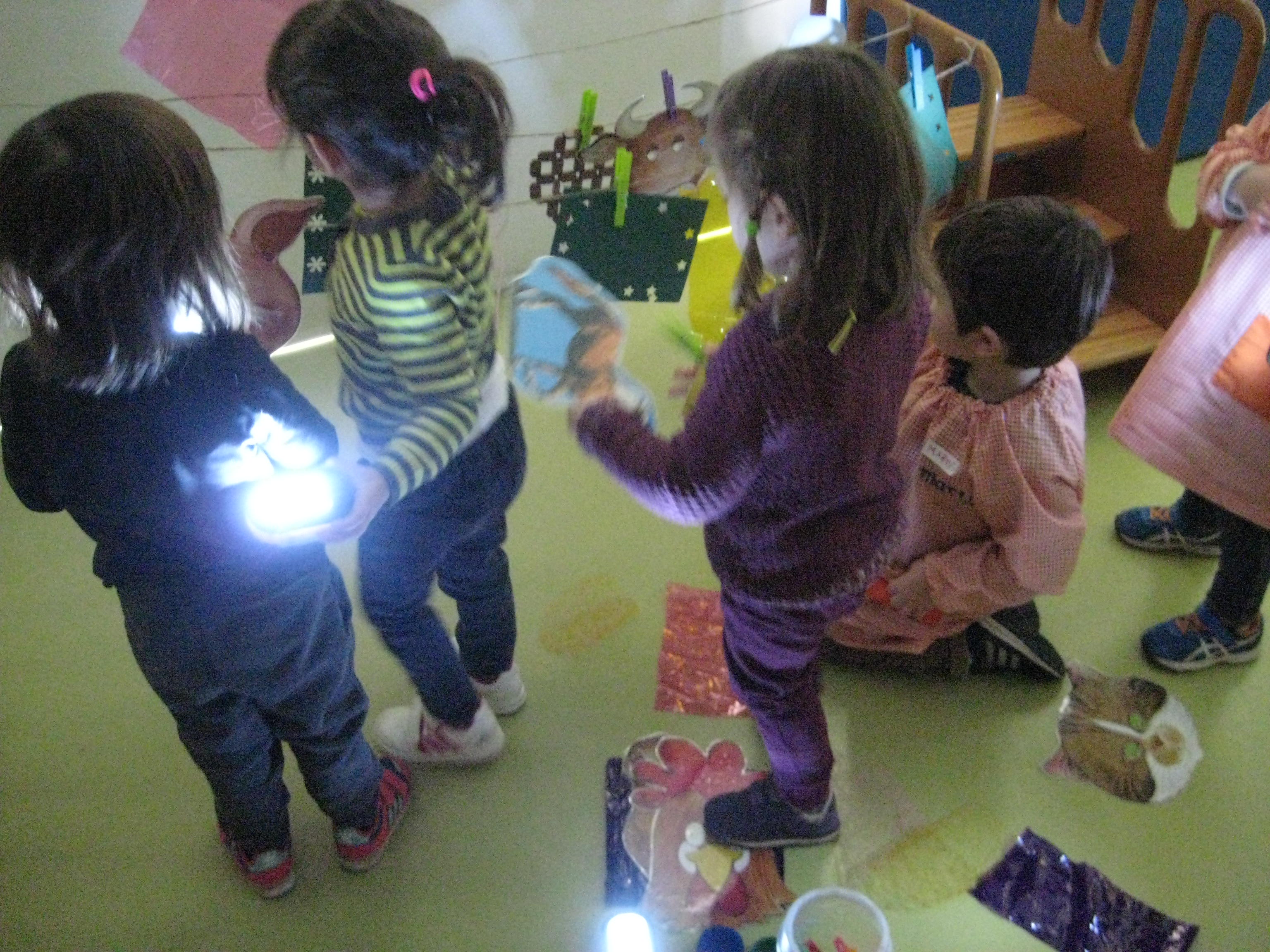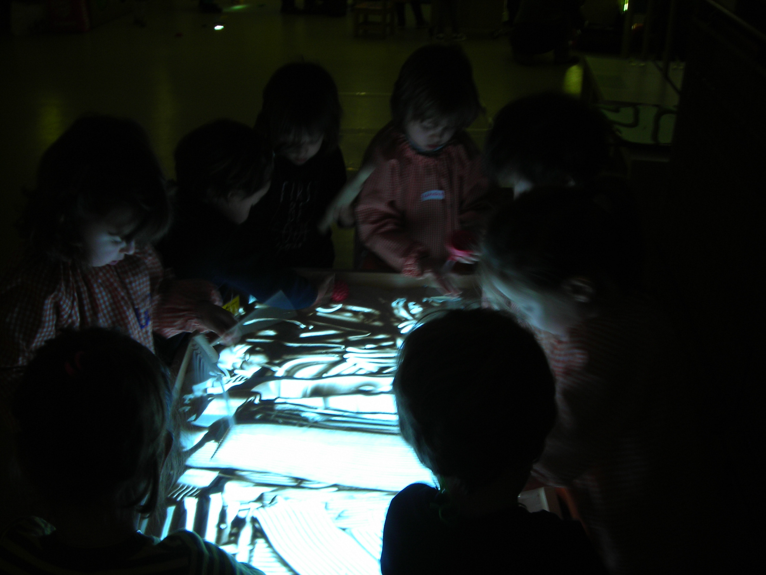 Aquí teniu una petita mostra dels tallers de llum que hem realitzat conjuntament amb els nens i nenes de l’ escola bressol. Aquest mes de febrer hem anat en dos sessions, amb mig grup, la classe dels follets i al març aniran els nens i nenes de la classe de les fades. Hem fet quatre tallers que tenen com a eix comú la llum. Els tallers són: taula de llum, taula de llum amb sorra, taller d’ombres amb llanternes i taller d’ombres amb el retroprojector.