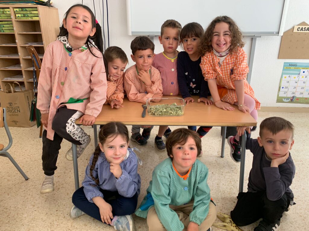 Els nens i nenes d’I4 hem cuinat amb les hortalisses que vàrem collit de l’hort. Amb l’enciam, cogombres (i alguna cosa més que hem comprat) hem fet una amanida. I amb les bledes hem pujat a l’aula de “cooking” i hem cuinat una barreja de bledes i ou ben bona! Desprès hem gaudit molt al