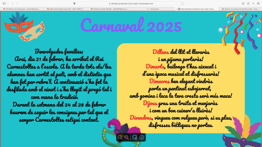 Aquí teniu una exposició molt especial que hem preparat a 5è dins de la situació d’aprenentatge “On hi ha vida?” Durant aquest projecte hem estudiat els microorganismes, com els bacteris, els virus i les cèl·lules, i hem après sobre la seva forma, funció i importància en la vida quotidiana. Per plasmar aquest aprenentatge d’una manera […]
