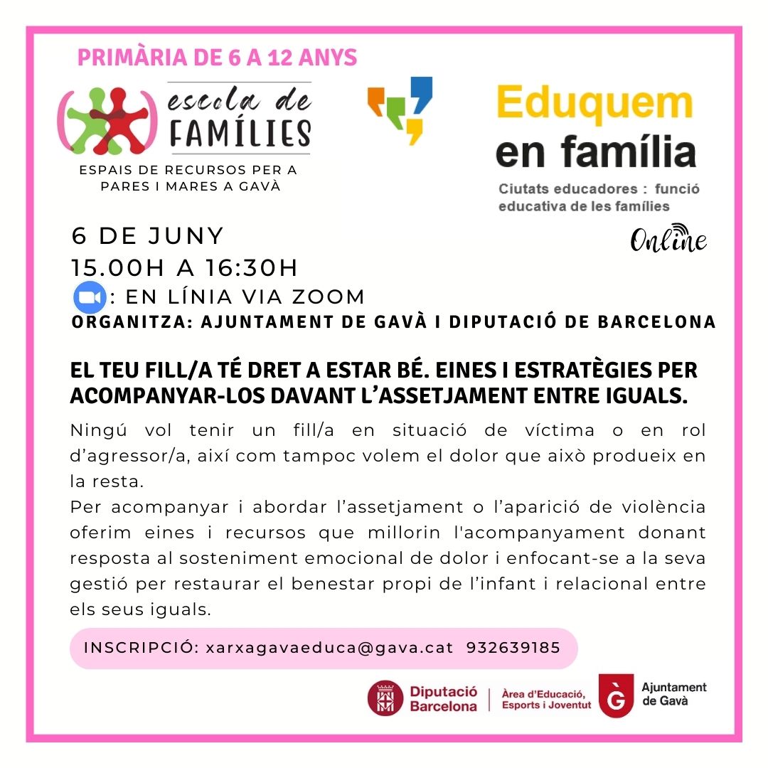 Escola de famílies Feu un comentari / Per Marcel·lí / 7 de juny de 2023 / General Us informem d’una activitat educativa dirigida als pares i mares de Gavà.