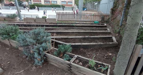 L’hort de l’escola funciona amb l’ajut d’unes famílies que ens preparen la terra dels calaixos.