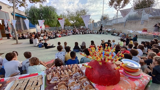 Per acabar la festa vam fer un berenar on vam poder tastar tot allò que durant el matí les diferents classes de l’escola havien preparat: panellets, brotxetes de fruita de tardor, castanyes, moniatos, pastís de carbassa, cargols de xocolata… Hi havia de tot i, a més a més, BONÍSSIM!!!