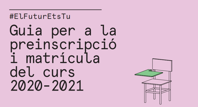 En el menú de l’esquerra, a l’apartat d’oferta educativa i preinscripció, podreu trobar alguns documents que poden ser d’utilitat a l’hora de realitzar el procés d’inscripció. Recentment hem afegit la guia de preinscripció i matriculació pel curs 2020-2021 elaborada pel departament d’ensenyament que us pot ser de gran utilitat.