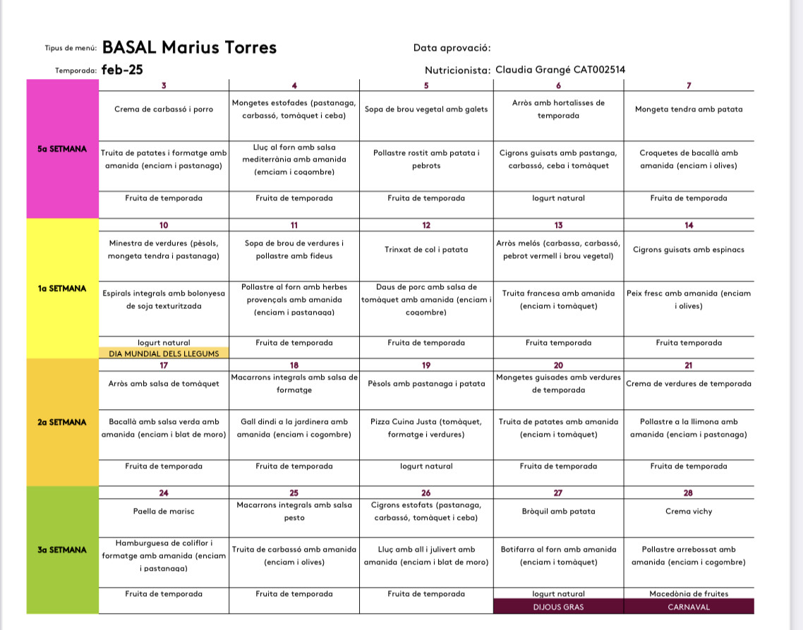 Estimades famílies, Adjuntem el menú del mes de febrer del 2025.