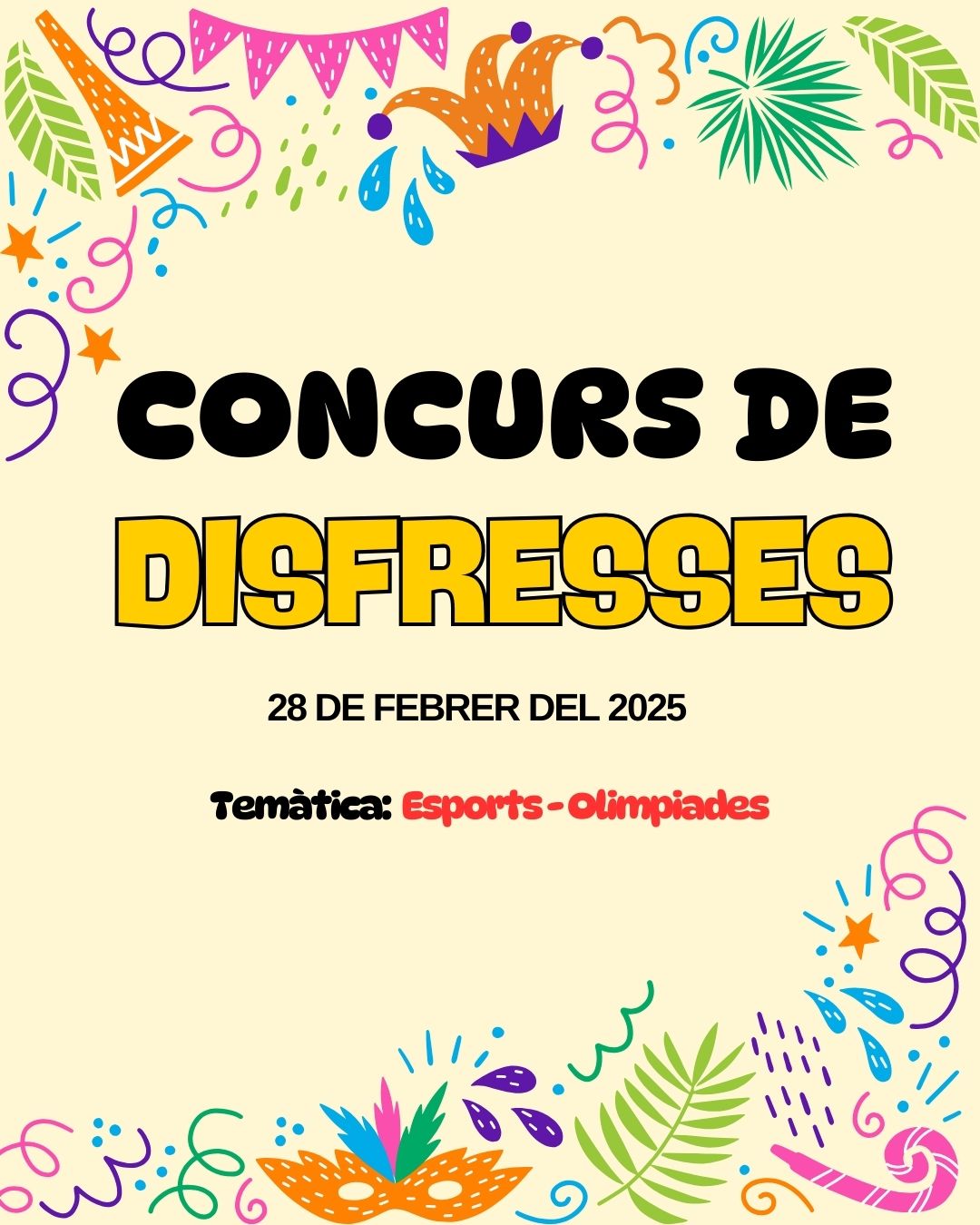 Bon dia famílies! El pròxim 28 de febrer convidem als vostres fills/es a participar en el concurs de disfresses que realitzarem a l’escola! Per poder participar, heu de complir els següents requisits: – La temàtica de la disfressa ha d’estar relacionada amb l’ESPORT-OLIMPIADES (ja que el tema del projecte interdisciplinari d’aquest curs és aquest). – […]