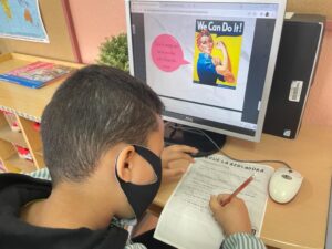 Els alumnes de cinquè van realitzar un vídeo amb els cartells que havien creat. Amb l’acompanyament del piano realitzat per la Guiomar, s’han llegit un manifest amb la proclama de voler una societat i un món molt més just i igual per a tothom. La lectura del manifest l’han realitzat l’Adrià, la Marame, la Lua i la Lídia.