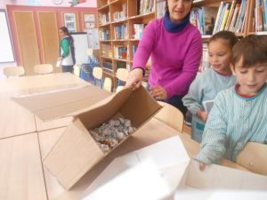 En arribar tots els cursos portaven una caixa en la que hi havien anat deixant el paper de plata recollit d’octubre a desembre, els vam pesar i sense resultat (ja que la bàscula no ho detectava) es va decidir contar-los per unitats.