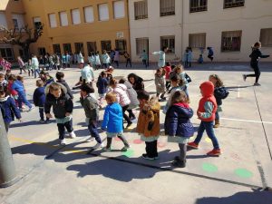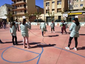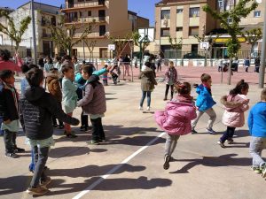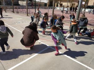 L’objectiu que ens hem proposat és realitzar salts tots junts, alumnes i mestres. Després de 15 minuts saltant hem anat a les classes a comptabilitzar el nombre aconseguit; han estat 10.036 salts. Ens ho hem passat molt bé practicant esport al pati de l’escola totes les classes juntes!