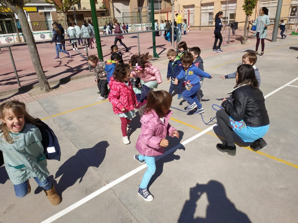 L’objectiu que ens hem proposat és realitzar salts tots junts, alumnes i mestres. Després de 15 minuts saltant hem anat a les classes a comptabilitzar el nombre aconseguit; han estat 10.036 salts. Ens ho hem passat molt bé practicant esport al pati de l’escola totes les classes juntes!