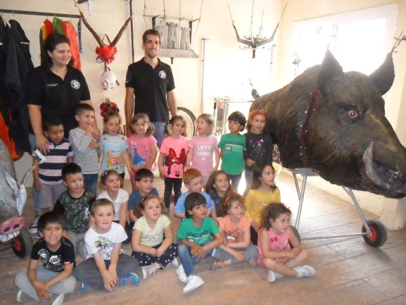El Gerard i la Iris, membres del grup de diables de l’Espluga de Francolí, ens van venir a buscar a l’escola per portar-nos a veure el seu local.
