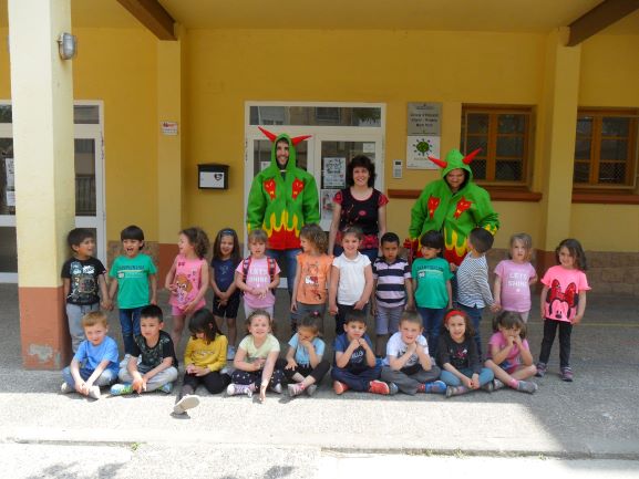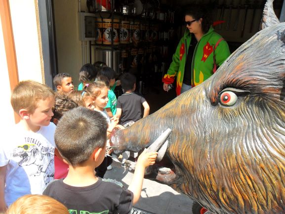 El Gerard i la Iris, membres del grup de diables de l’Espluga de Francolí, ens van venir a buscar a l’escola per portar-nos a veure el seu local.