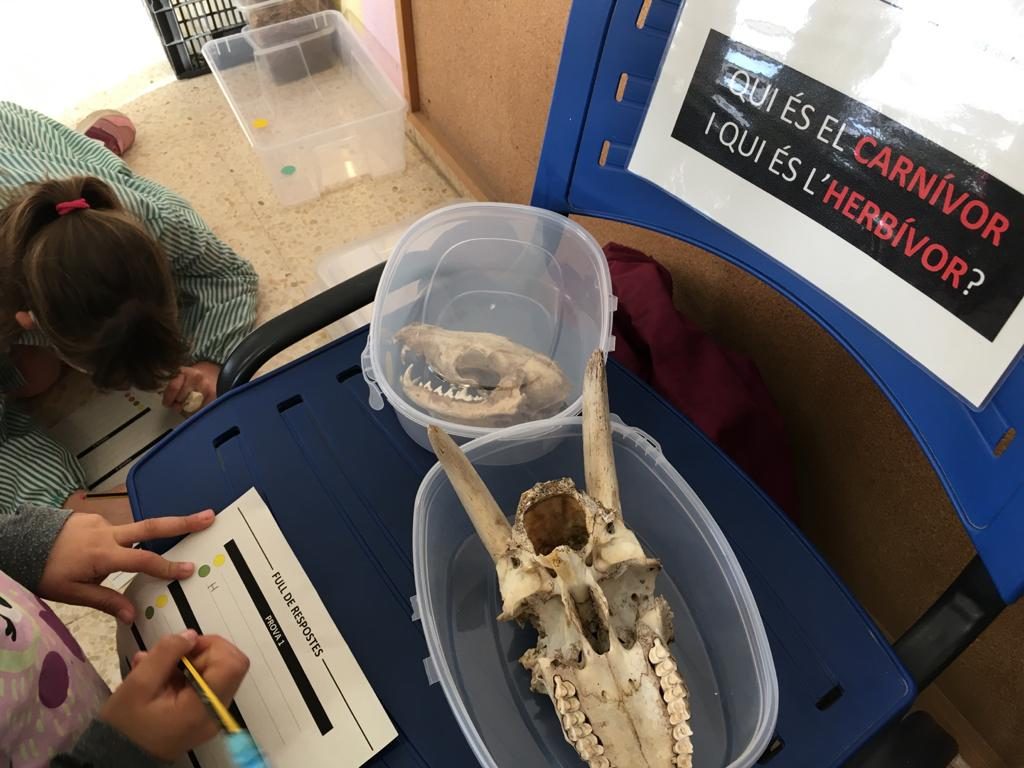 Avui a la classe de tercer hem après a identificar plomes, restes de menjar, excrements, nius, larves, ruscs, petjades, dents i restes d’ous dels animals que viuen al nostre bosc, gràcies al taller que ens ha ofert el PNIN de Poblet.