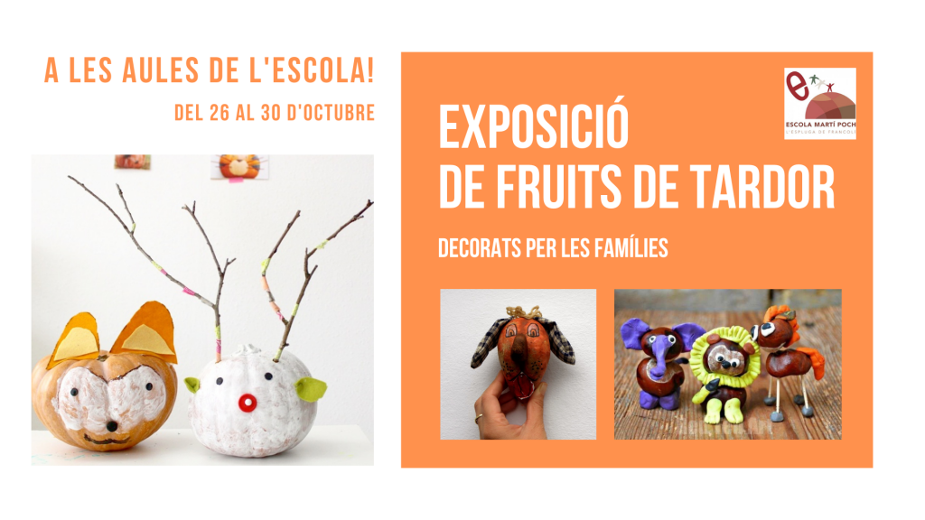 Ens agradaria comptar amb la vostra participació, per aquest motiu us proposem que juntament amb els vostres fills/es decoreu fruits de tardor i els porteu a l’escola al llarg de la setmana del 26 al 30 d’octubre.