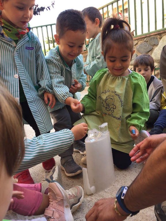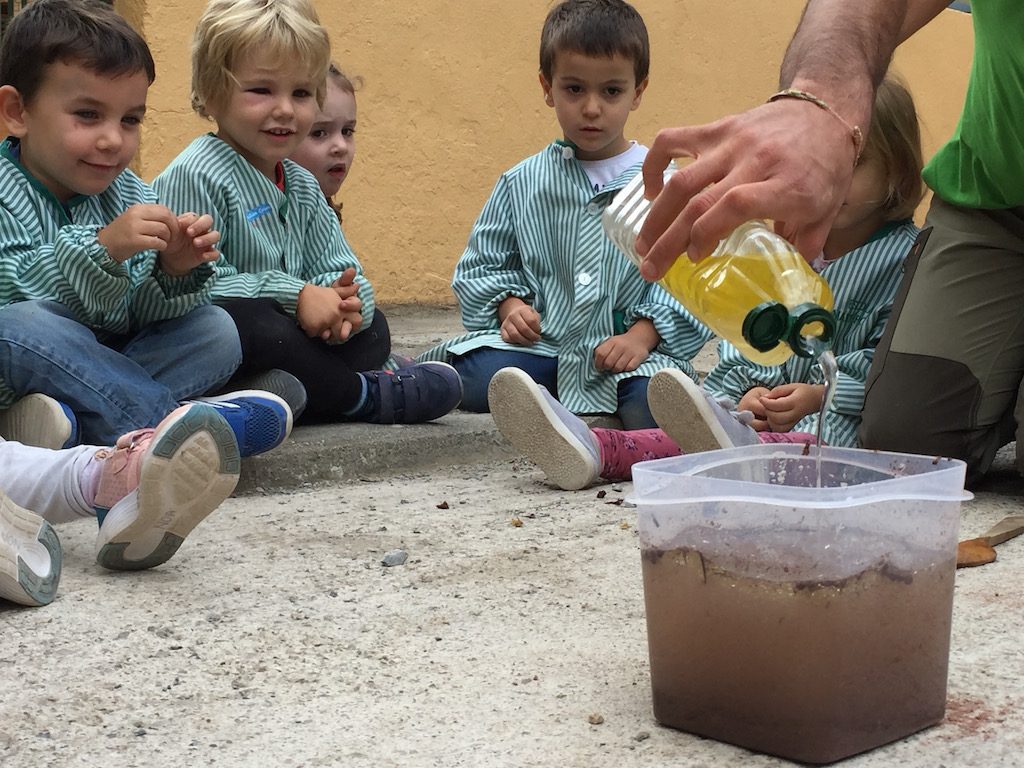 A través de diverses activitats van poder conèixer d’on prové l’aigua de l’aixeta, i a través de diversos materials van poder experimentar com arriba l’aigua als rius i als mars. També van fer un experiment amb aigua, terra i oli. A partir d’aquí van poder veure com s’embruta l’aigua!