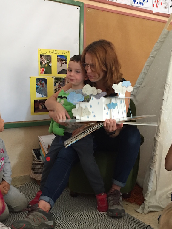 A educació infantil i al llarg de tot el curs es duu a terme el projecte Les famílies expliquen contes. Aquest matí els infants de P-3 han rebut al visita de la mare del Roc Torres López i els hi ha explicat el conte El monstre de colors, en anglès.