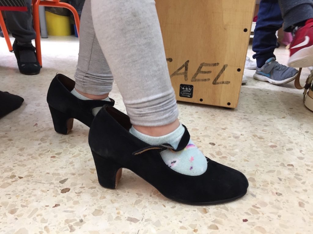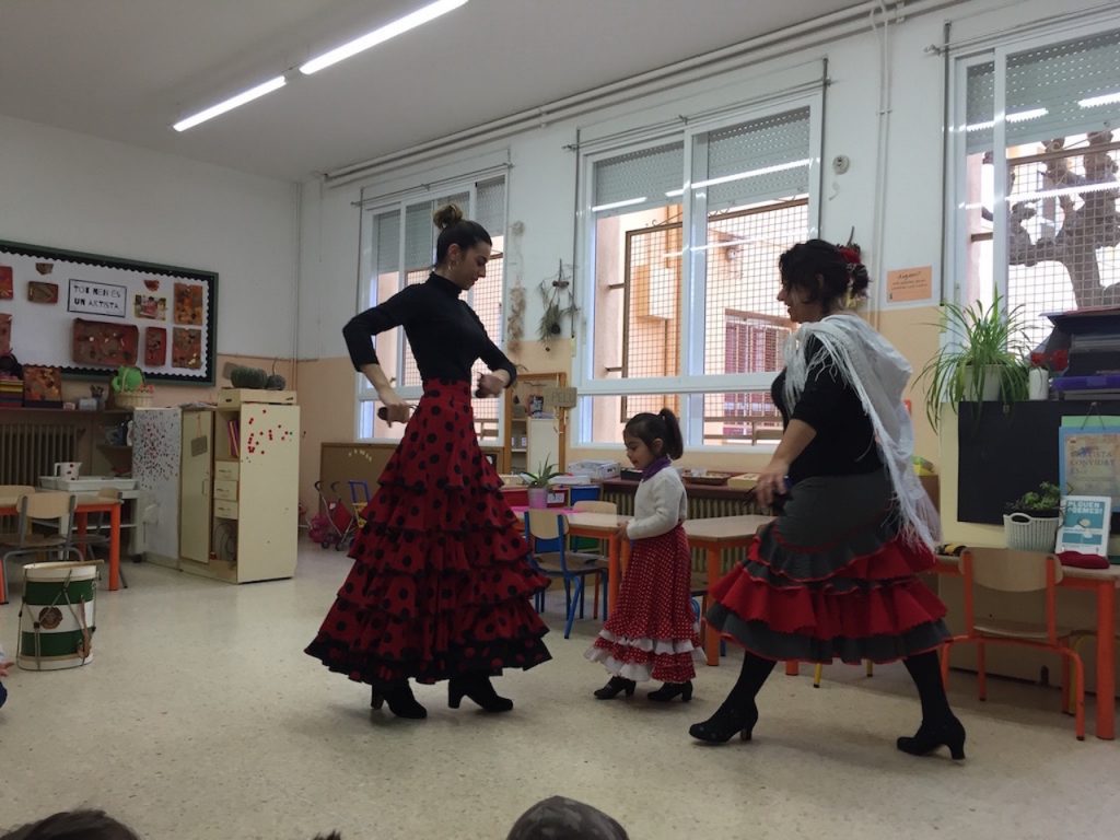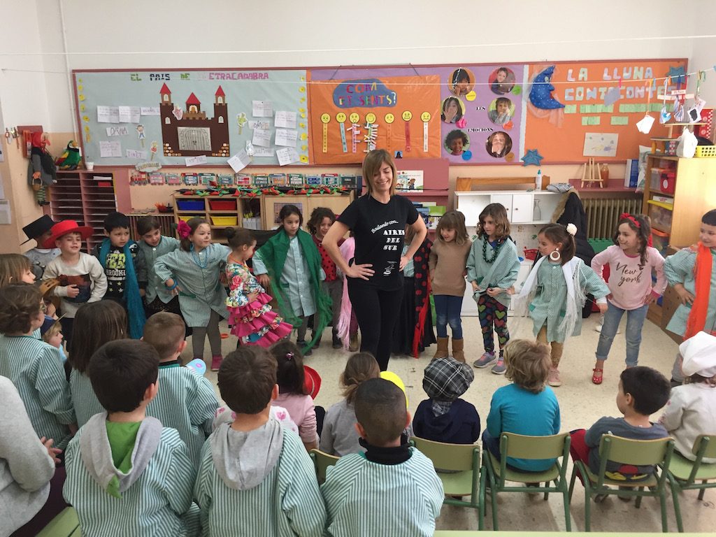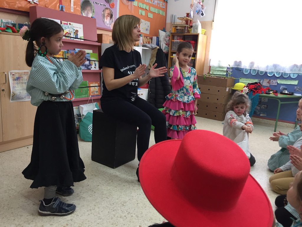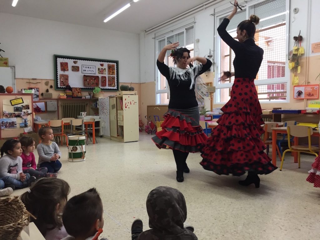La Jéssica, la mare de l’Èlia de 5 anys ens va fer una bona demostració de com es ballen les sevillanes! Amb motiu del projecte de “L’Artista convidat és…” els nens i nenes van aprendre a ballar sevillanes, a tocar les castanyoles, també la caixa i el tambor!