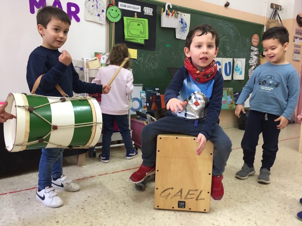 Van poder tocar el tambor i la caixa del Gael… que també ha començat a anar a classes!
