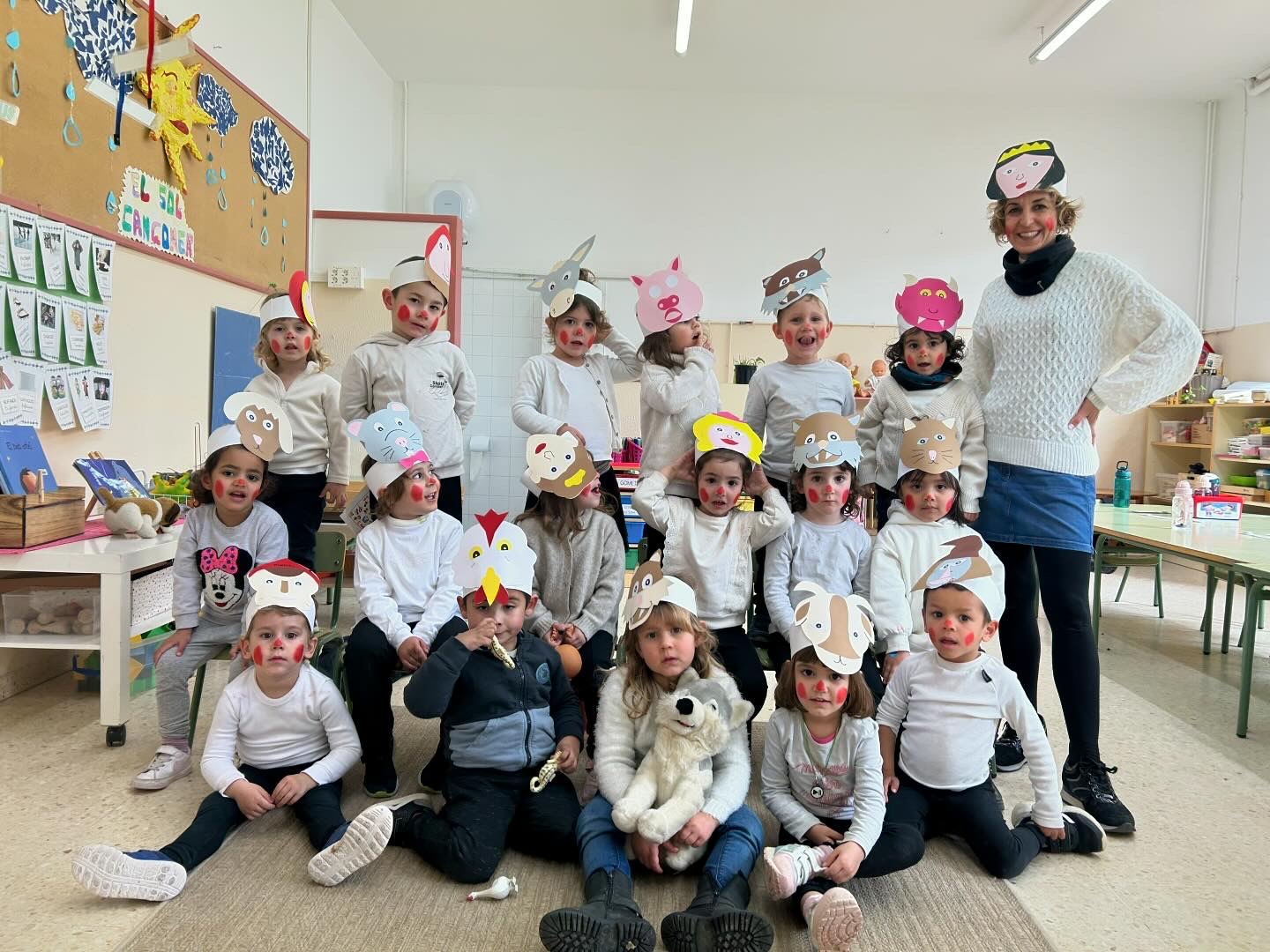 Totes les aules de l’escola tenen noms d’autors/es i il•lustradors/es coneguts/des. Aquesta setmana, amb la col.laboració de les famílies, han elaborat un complement relacionat amb personatges i elements dels seus contes i avui els hem lluït pels carrers del poble! 🎺🎷🎶