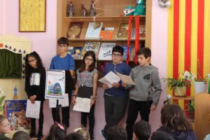 Els nois i noies més grans de l’escola han ofert lectures de poemes de Lola Casas, Montse Ginesta, Faula d’Isop, Jaume Cela i Miquel Martí i Pol. Tot seguit han llegit un fragment d’un llibre de Núria Pradas. Finalitzaven la sessió de lectura, els més petits de l’escola van llegir un poema de la primavera i “La Balena” de Isabel Barriel.