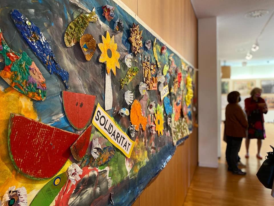 A l’entrada de la sala hi comparteix protagonisme una petita mostra dels treballs que durant el curs 2020-2021 van realitzar els alumnes de l’escola Martí Poch entorn a la figura i obra de l’autor montblanquí.