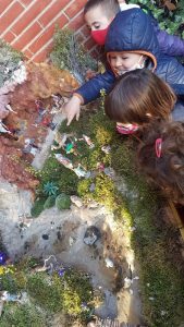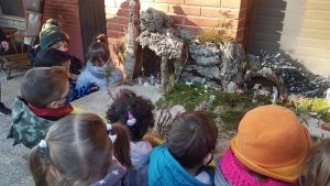 El Guifré tot orgullós ens porta una nota, escrita per ell, on ens convida a tot els tres nivells del cicle d’infantil a anar al jardí de cada seva per admirar el pessebre que la família ha muntat sota el porxo de l’entrada.