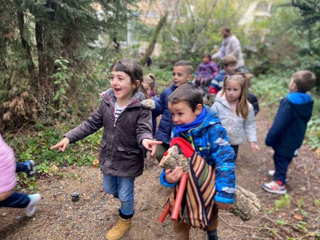 Els més petits de l’escola hem anat a descobrir qui s’havia amagat al Jardí dels Francolins, molt a prop de l’escola! Sí, era el tió!!! Quina il•lusió!
