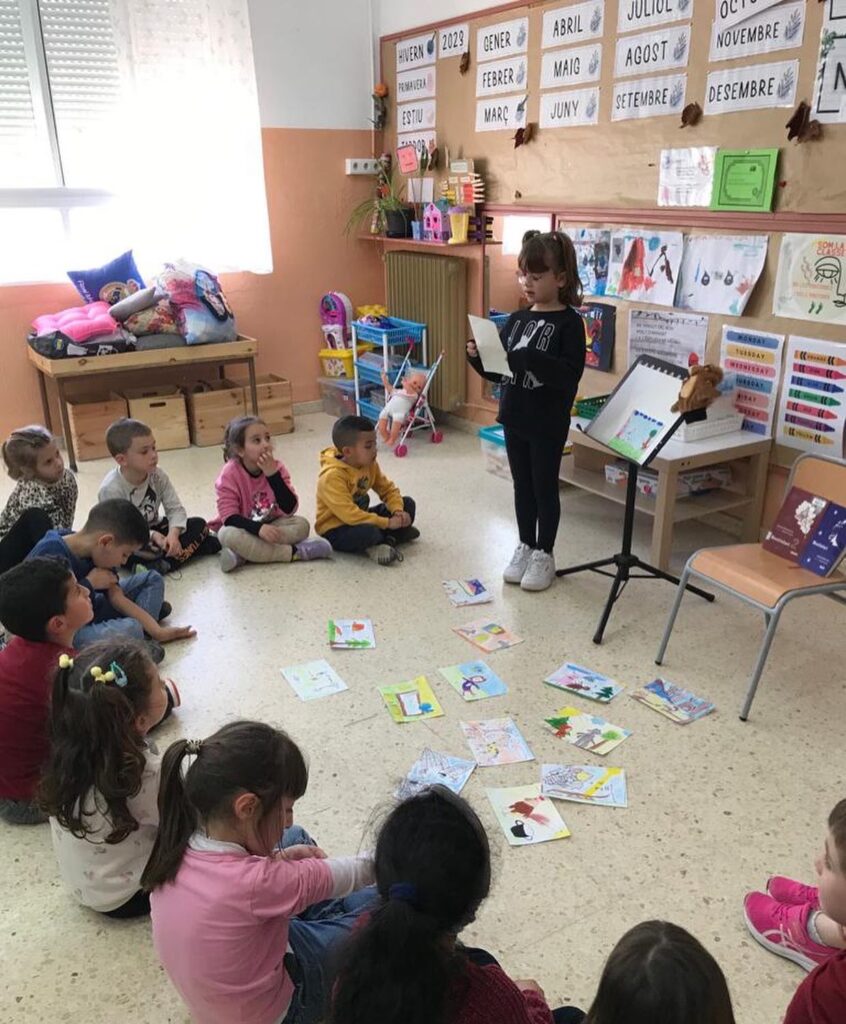 Els petits han gaudit del recital de poemes de l’esquirol, la papallona, el llop, el ratolí, la sargantana, el gos, el gall, la guineu, las balena, l’escarabat, el conill, l’aranya, la girafa i el gat. També han compartit els dibuixos que van fer per il·lustrar cada poema. 🎨