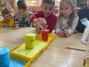 Aprendre dels experts és molt gratificat. Però l’alumnat mica en mica també s’ha fet expert tot manipulant els diversos elements. Per a posar-vos alguns exemples. Els alumnes de cicle inicial han fet colònia a partir de romaní, espígol o farigola. S’han tornar a crear volcans, fent petites erupcions de colors els més petits de l’escola. S’han creat racons de ciència per treballar les energies, l’electricitat estàtica, conèixer millor la natura, la densitat o el magnetisme. Hem observat com l´energia eòlica es transforma en elèctrica, com funciona un molinet a partir d’una placa solar, hem observat com podem fer moure un vehicle a propulsió, com generem electricitat estàtica a partir de diferents materials, què passa quan barregem líquids de diferents densitats, observem pells de serp, nius, pedres volcàniques… i experimentem amb la magnetita i el seu poder d’atraure diferents metalls. Els circuits elèctrics que han creat els més grans de l’escola també han fascinat. Quantes descobertes! I encara més important, quants interrogants!