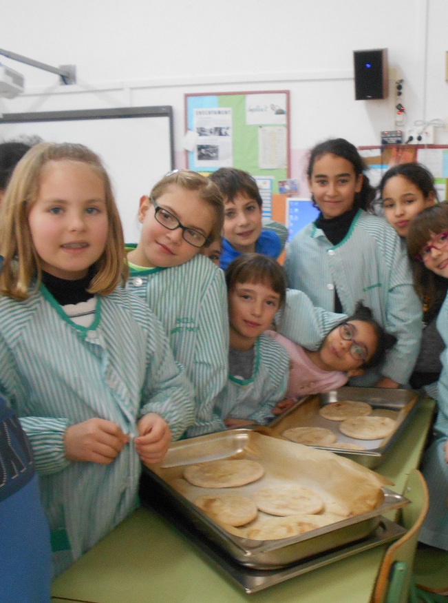 A Cicle Mitjà l’hem preparat igual que ells i l’hem cuit al forn de l’escola. I a la tarda abans de marxar cap a casa hem berenat pa àzim amb xocolata!!!.