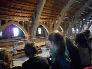 A la tarda vam visitar el molí. Allí fora hi descarregaven les olives i en un munt de fulles d’olivera fins i tot vam veure una oruga verda, blava i una mica gris. Quan vam entrar al molí era tot fosc i sentiem unes màquines que feien brrrrbrrrrr. Allí vam poder veure la prensa, les tines…i ens anaven explicant tot el funcionament.
