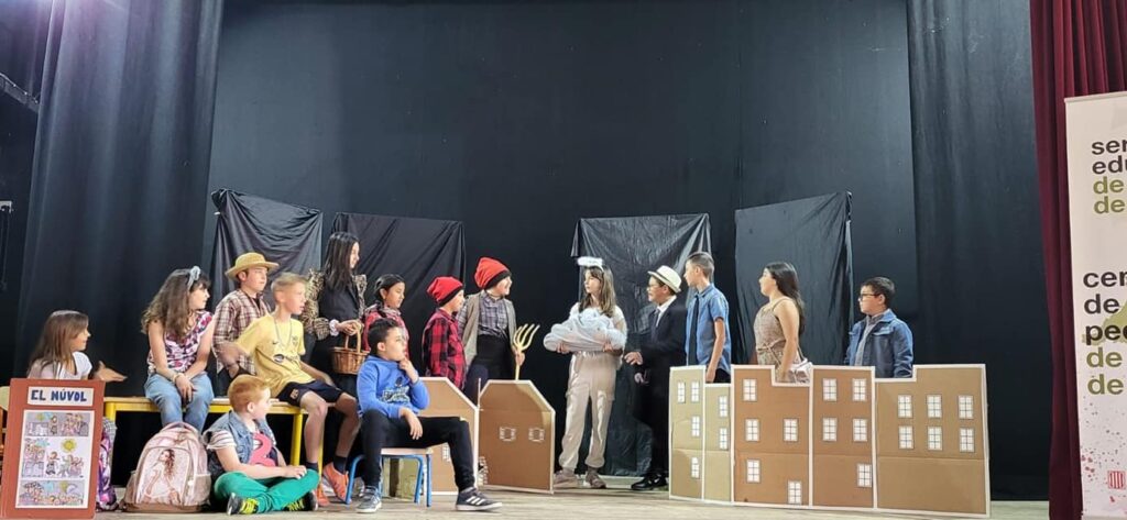 Una experiència molt divertida i enriquidora que ajuda a l’alumnat a millorar la comunicació oral i l’expressió corporal a través del teatre, a més de viure una jornada de convivència amb altres nenes i nens de la comarca.