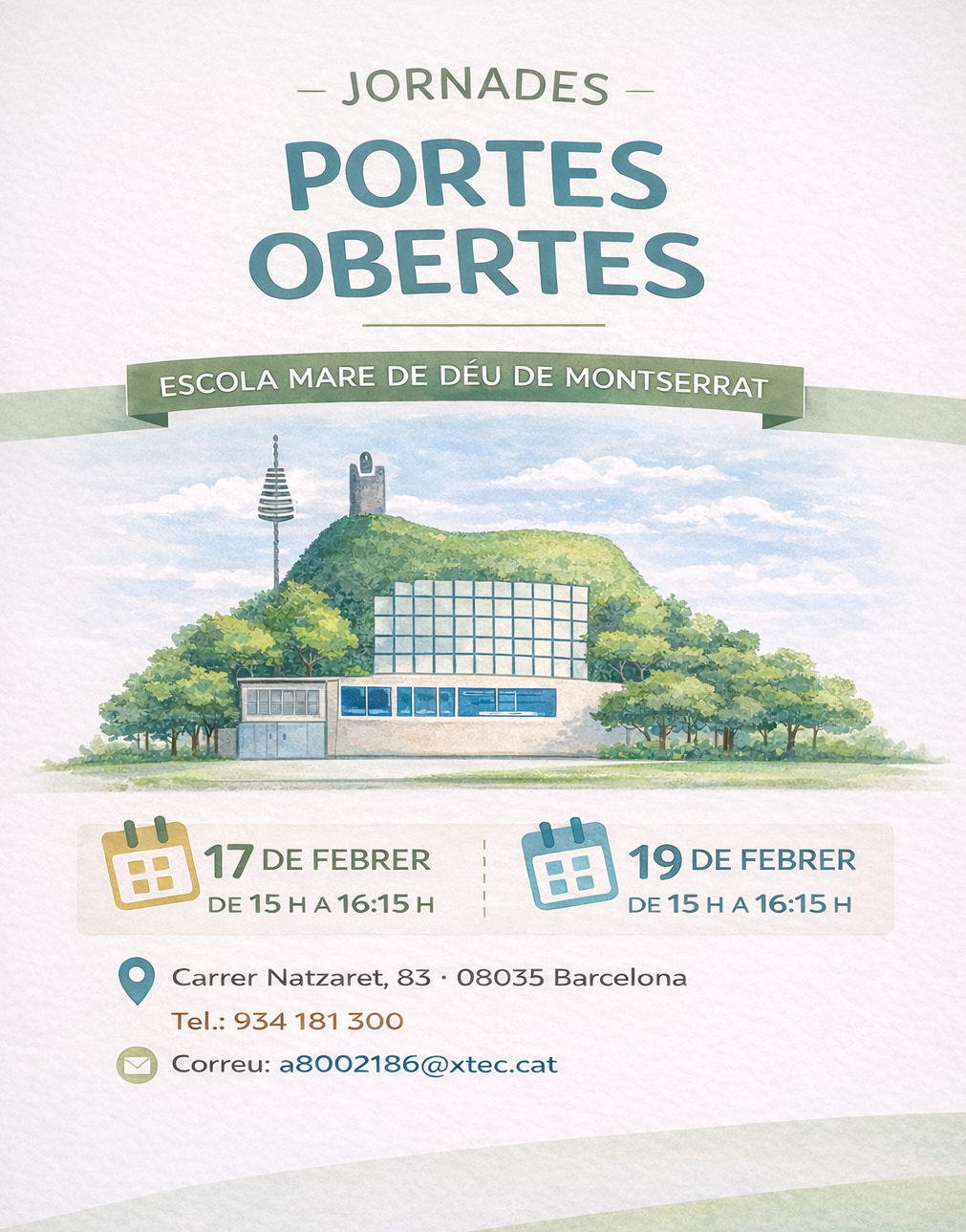 PORTES OBERTES 26 (Per apuntar-vos cliqueu el cartell) Feu un comentari / Per escolamontserrat / 22 de gener de 2026 / Portada Secretaria