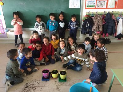 Les Papallones, les Marietes i les Formigues han plantat pèsols! Entre tots han posat terra, els esqueixos i, també, han regat! Estan fets tots uns jardiners!
