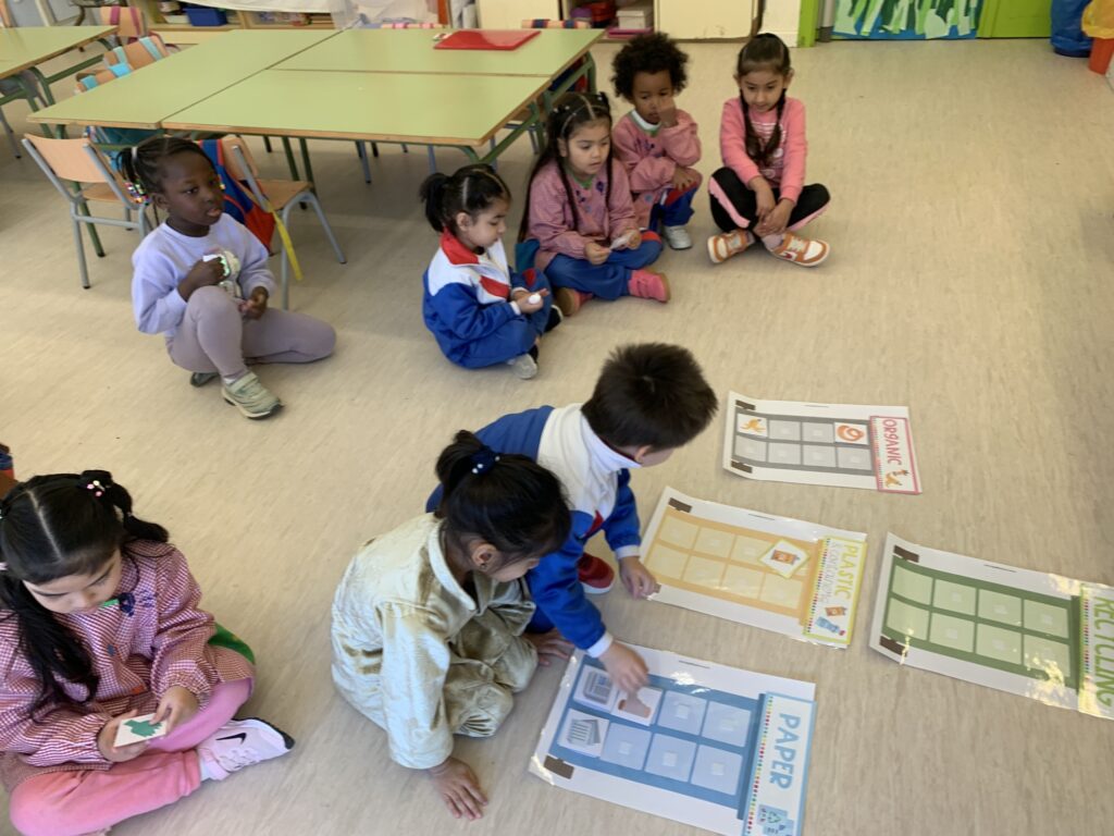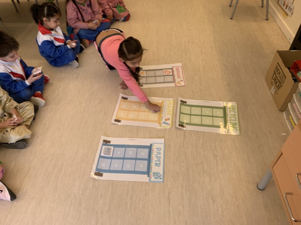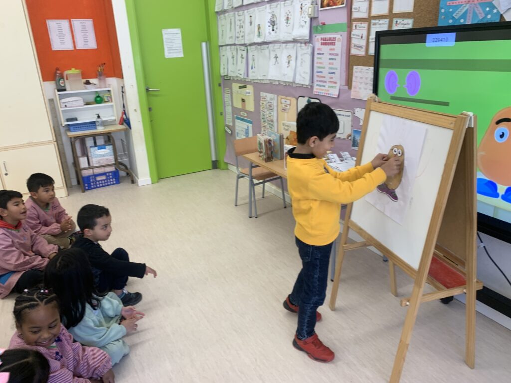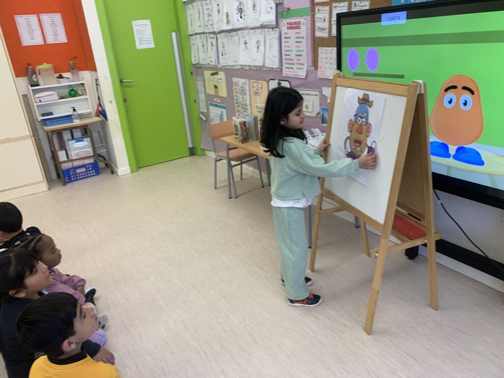 In I4 and I5, we continue with the same learning activities and expand vocabulary through stories. The students interact with puppets and begin to understand concepts more deeply. Some topics include the difference between farm animals and wild animals, healthy and unhealthy food, recycling (especially at school), and naming the parts of the face and some parts of the body of Mr. and Mrs. Potato.
