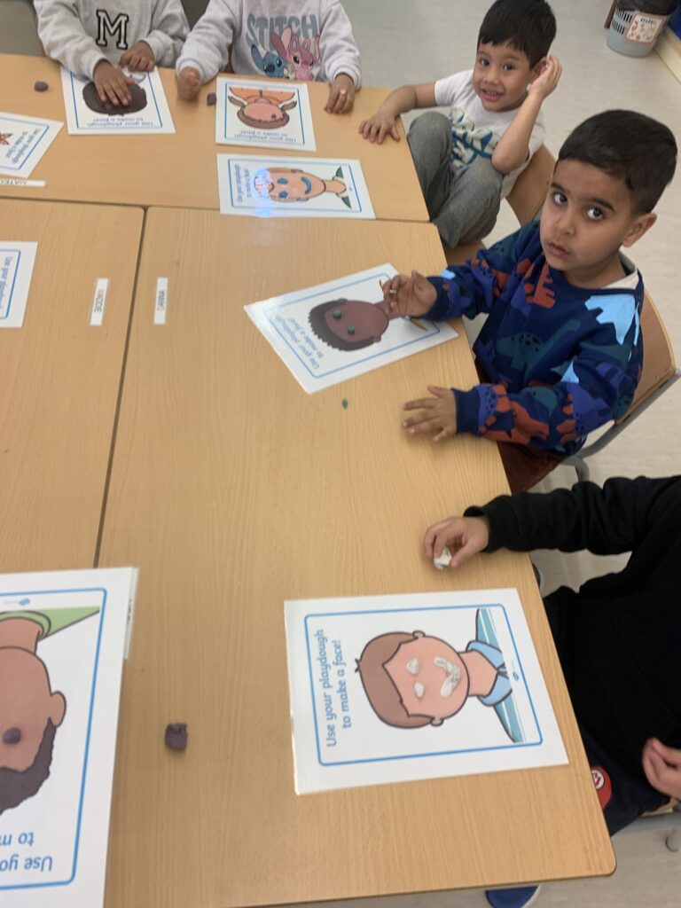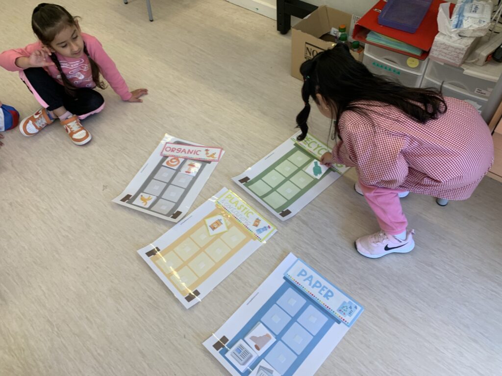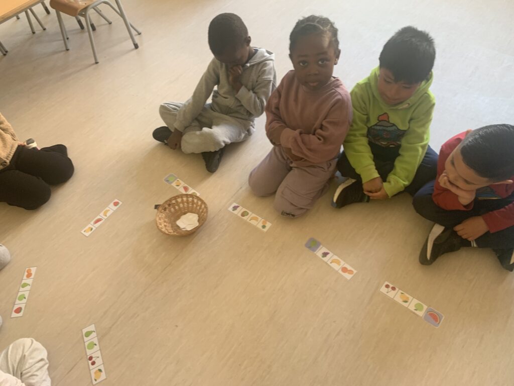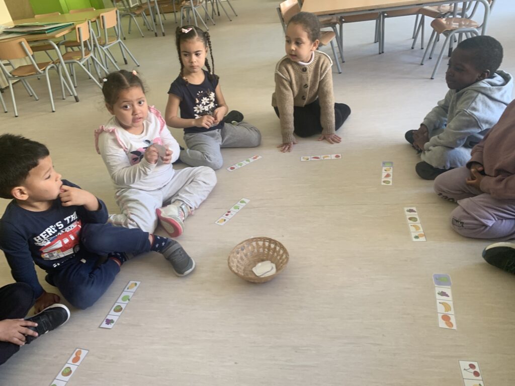 In I4 and I5, we continue with the same learning activities and expand vocabulary through stories. The students interact with puppets and begin to understand concepts more deeply. Some topics include the difference between farm animals and wild animals, healthy and unhealthy food, recycling (especially at school), and naming the parts of the face and some parts of the body of Mr. and Mrs. Potato.