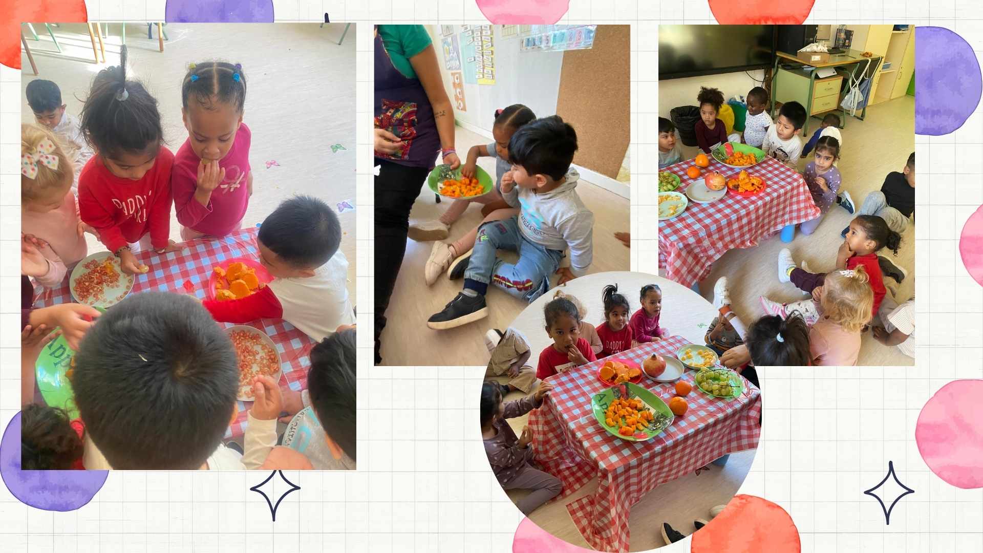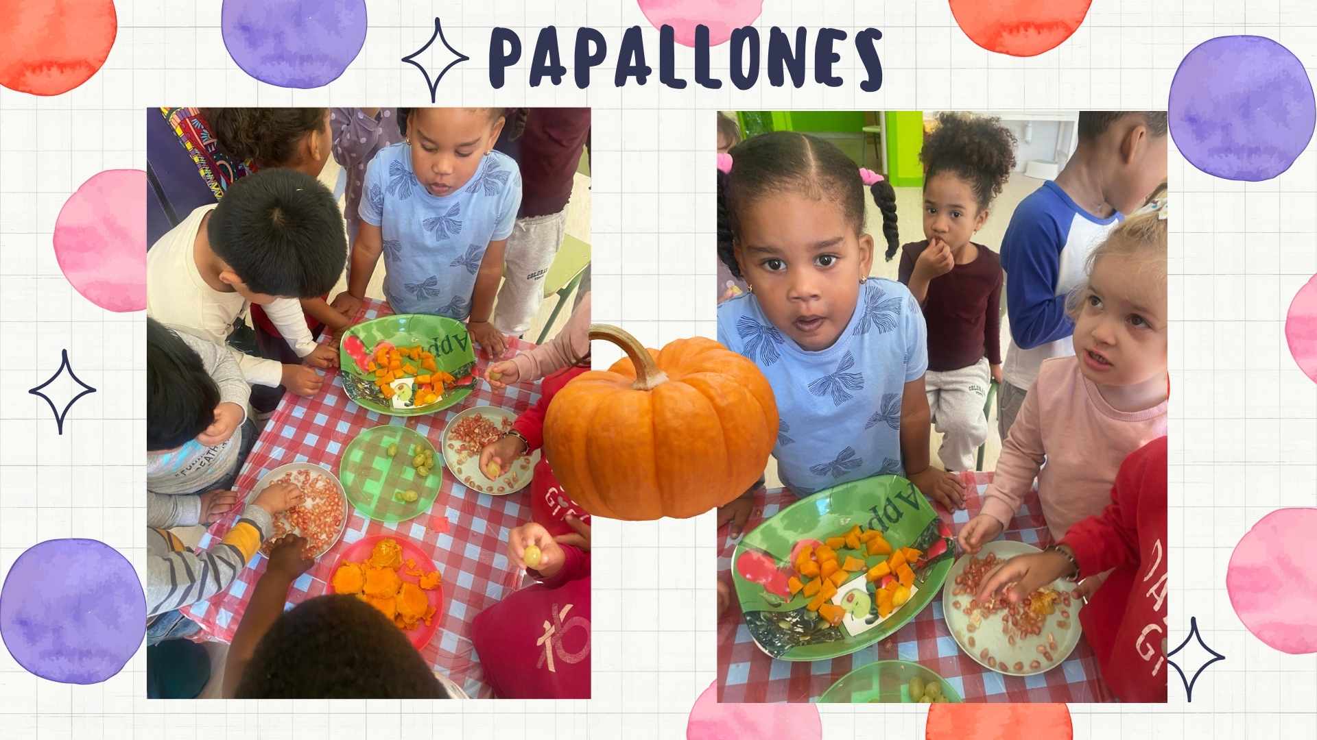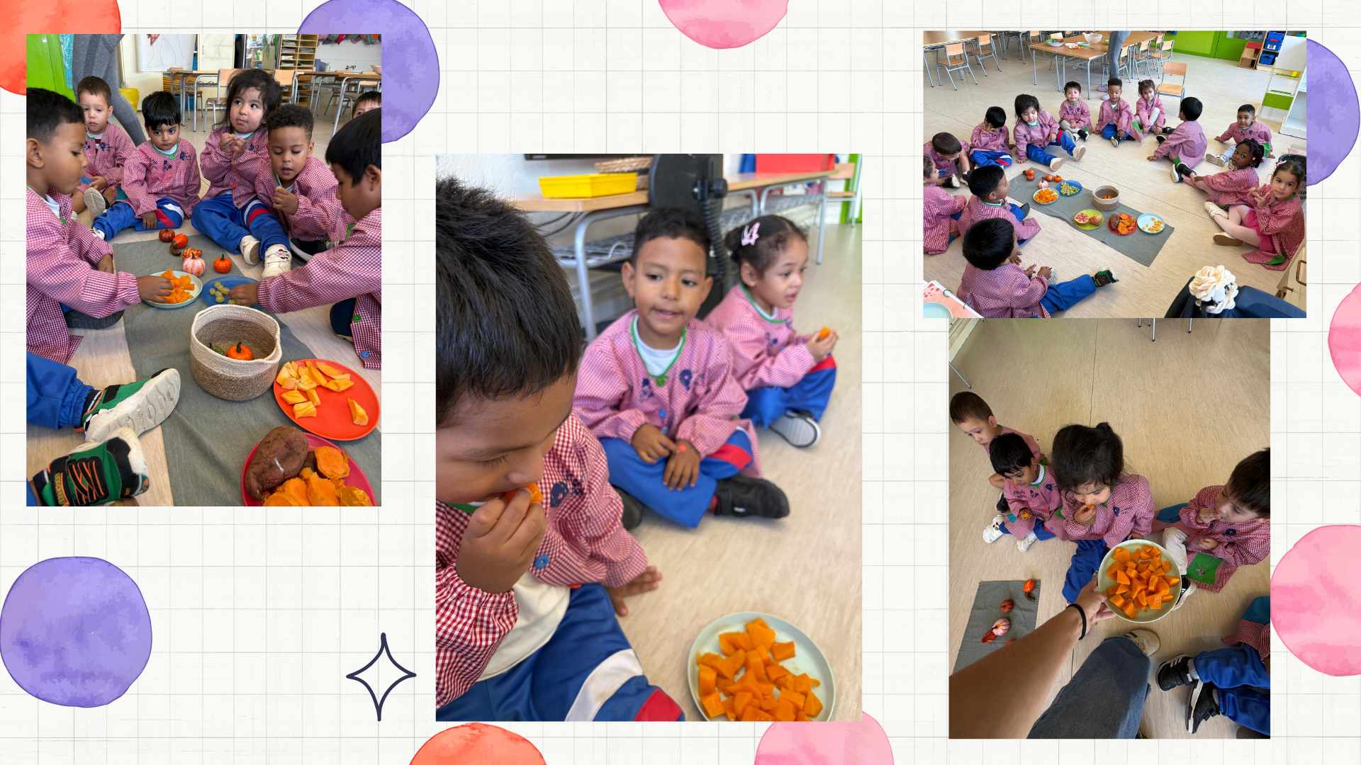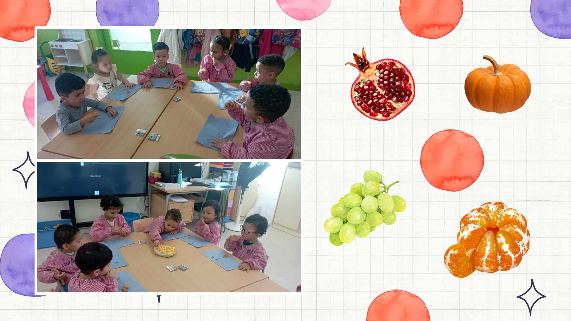 Ja s’acosta la festa de la castanyada i els infants d’I3 han gaudit d’un tastet de tardor, hem pogut tastar aquells fruits que s’han anat presentant durant les darreres setmanes. El que més els ha agradat ha estat el raïm i la magrana, tot i que també han menjat carbassa, moniato, mandarina i caqui. Us continuarem compartint imatges sobre aquesta estació tan bonica. Que continuï la festa!