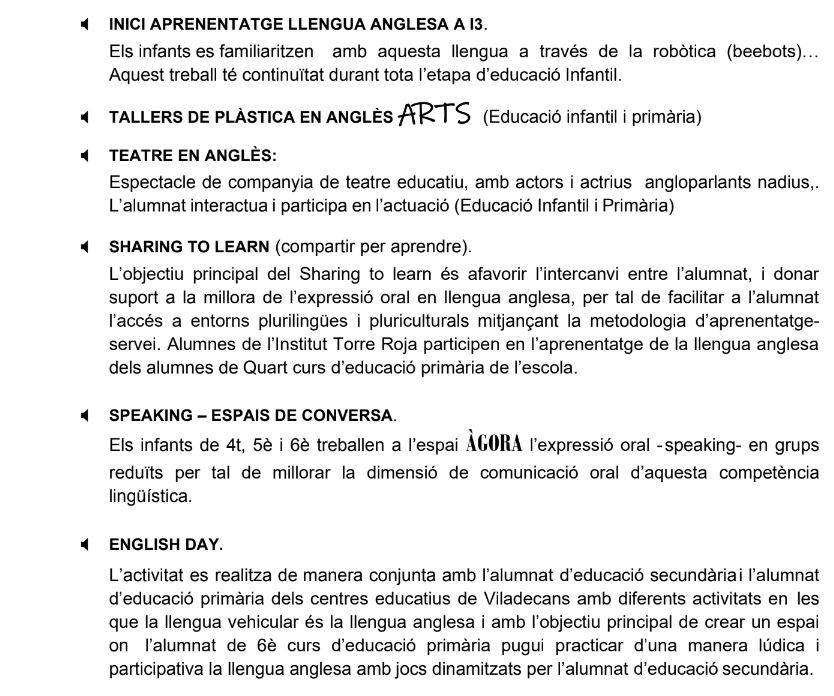 • Projecte Foment Llengua Anglesa
