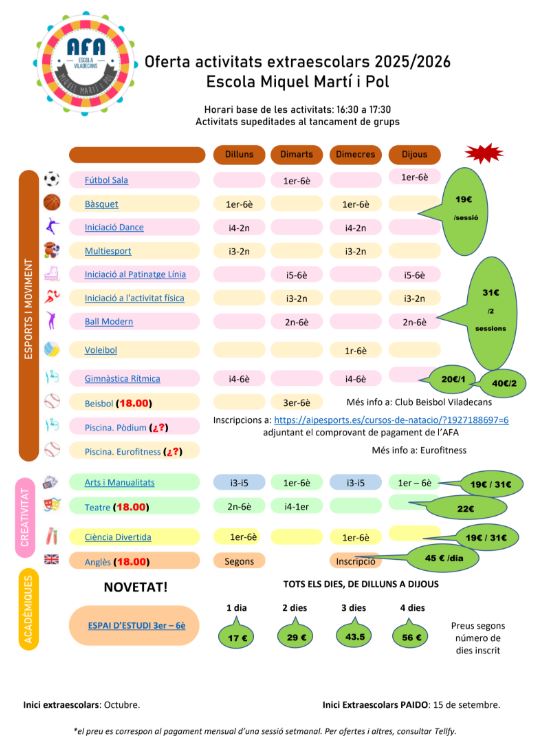 Activitats Extraescolars curs 2025-2026