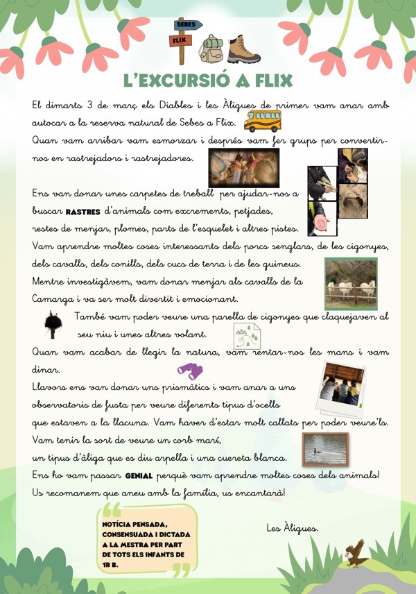A l’escola donem molt valor a aquestes activitats, perquè creiem que aprendre també vol dir viure, explorar i gaudir del nostre entorn. Cada sortida està pensada perquè sigui segura, educativa i plena de moments que recordarem amb il·lusió.