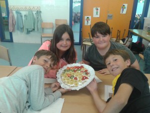 Per grups, van seguir els passos del text instructiu i finalment, van aconseguir fer una pizza de fruites. Que per cert, estava boníísssima!!!!